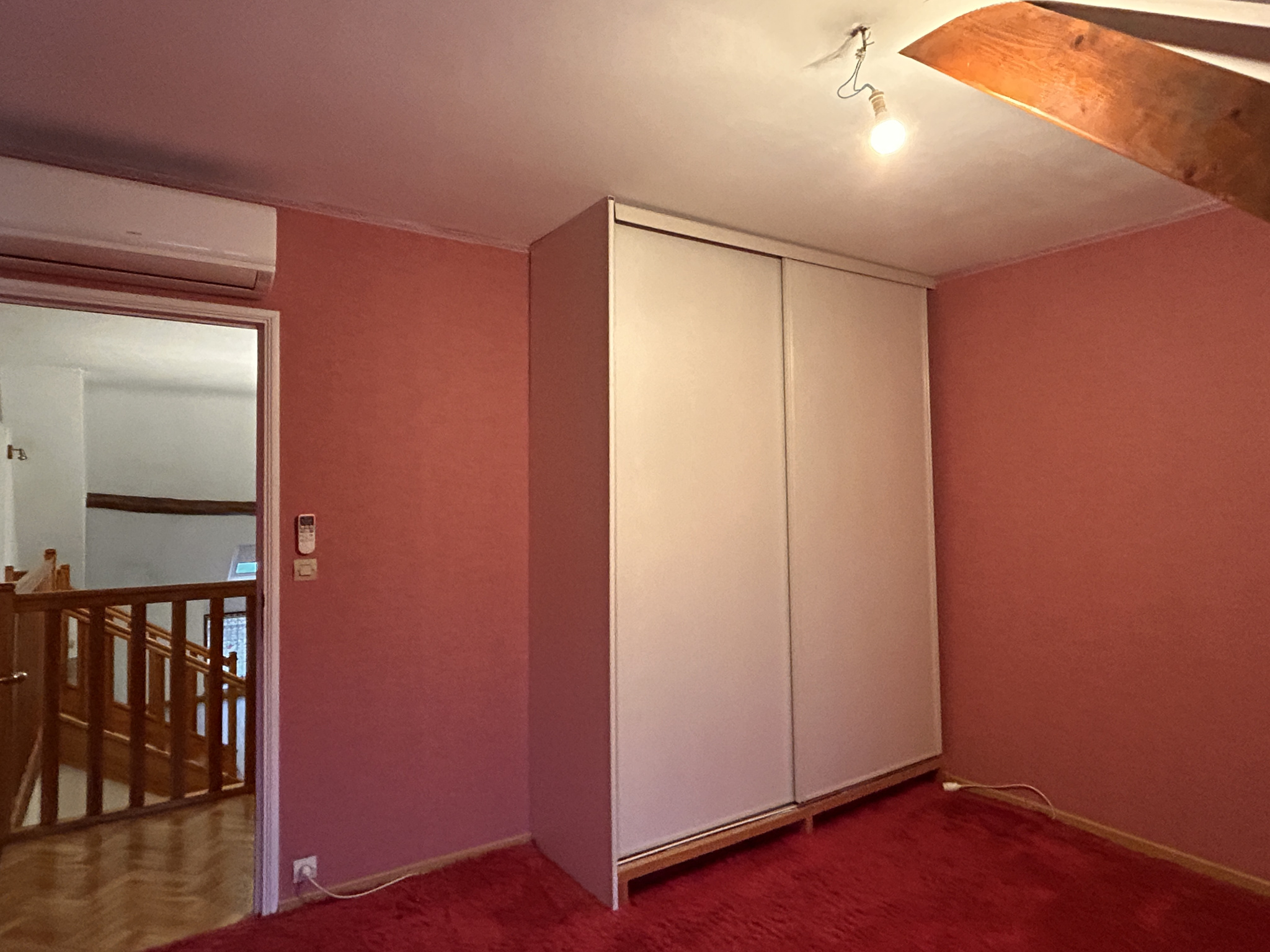 À l'étage : Grande mezzanine, trois chambres avec rangements dont une avec dressing, salle de bain avec WC.