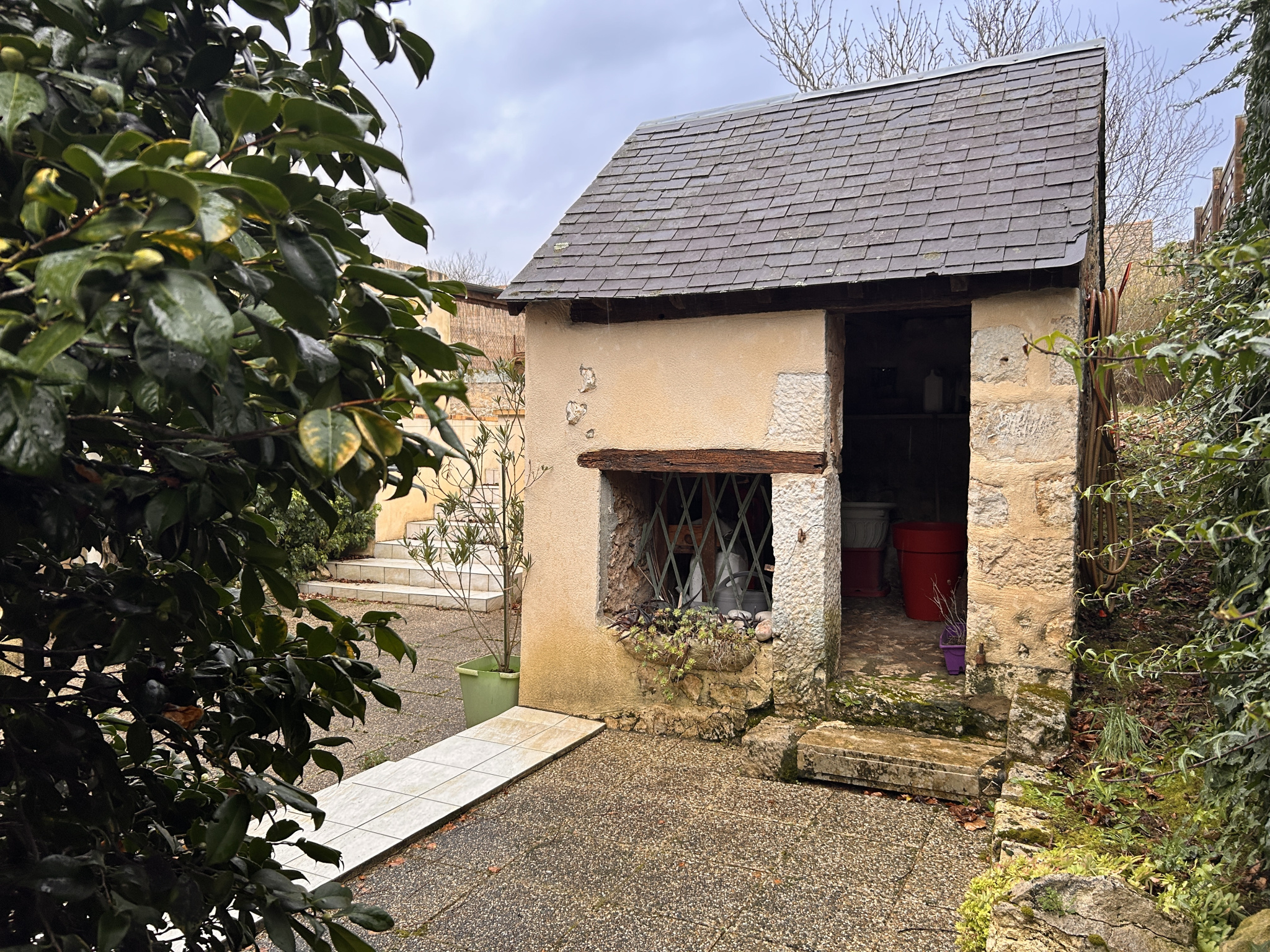 Dépendances (atelier/buanderie, cave voûtée, garage).