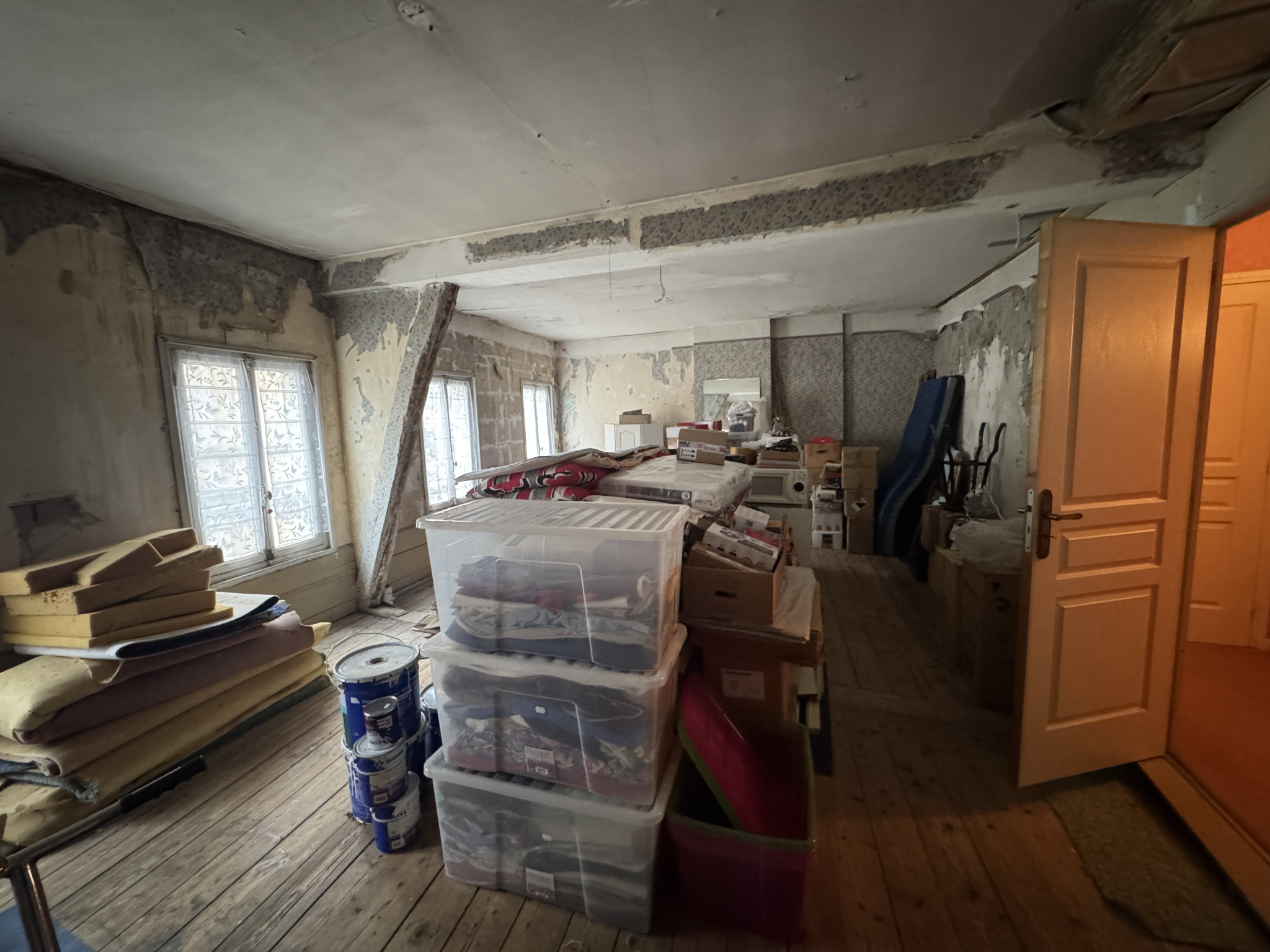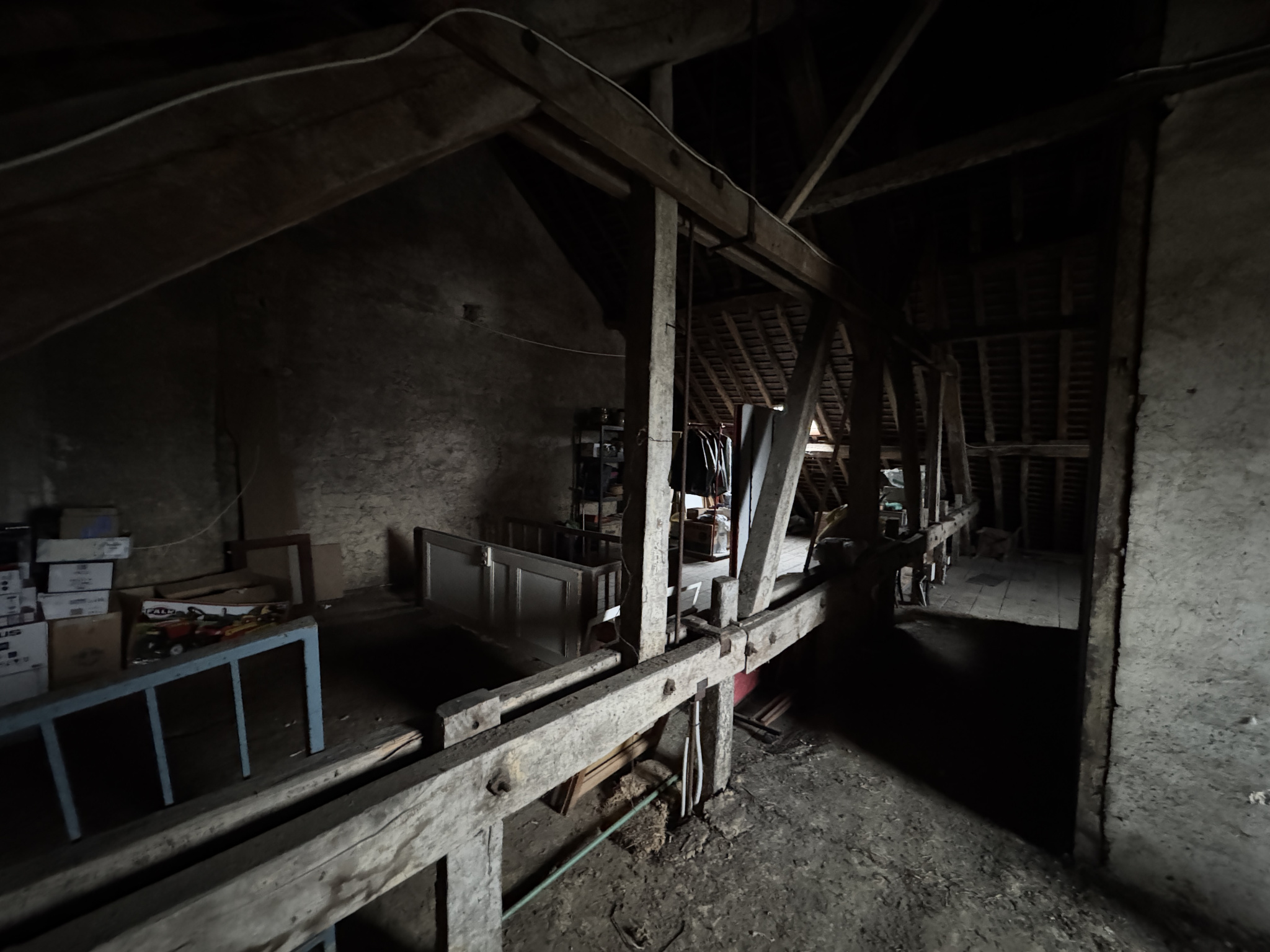 Au deuxième étage, vous trouverez une grande chambre, une salle de bain avec WC, ainsi qu'une vaste pièce entièrement à rénover, laissant la possibilité de créer un espace de vie supplémentaire, un bureau ou une suite selon vos besoins. Les combles, aménageables, représentent un potentiel d'extension non négligeable.