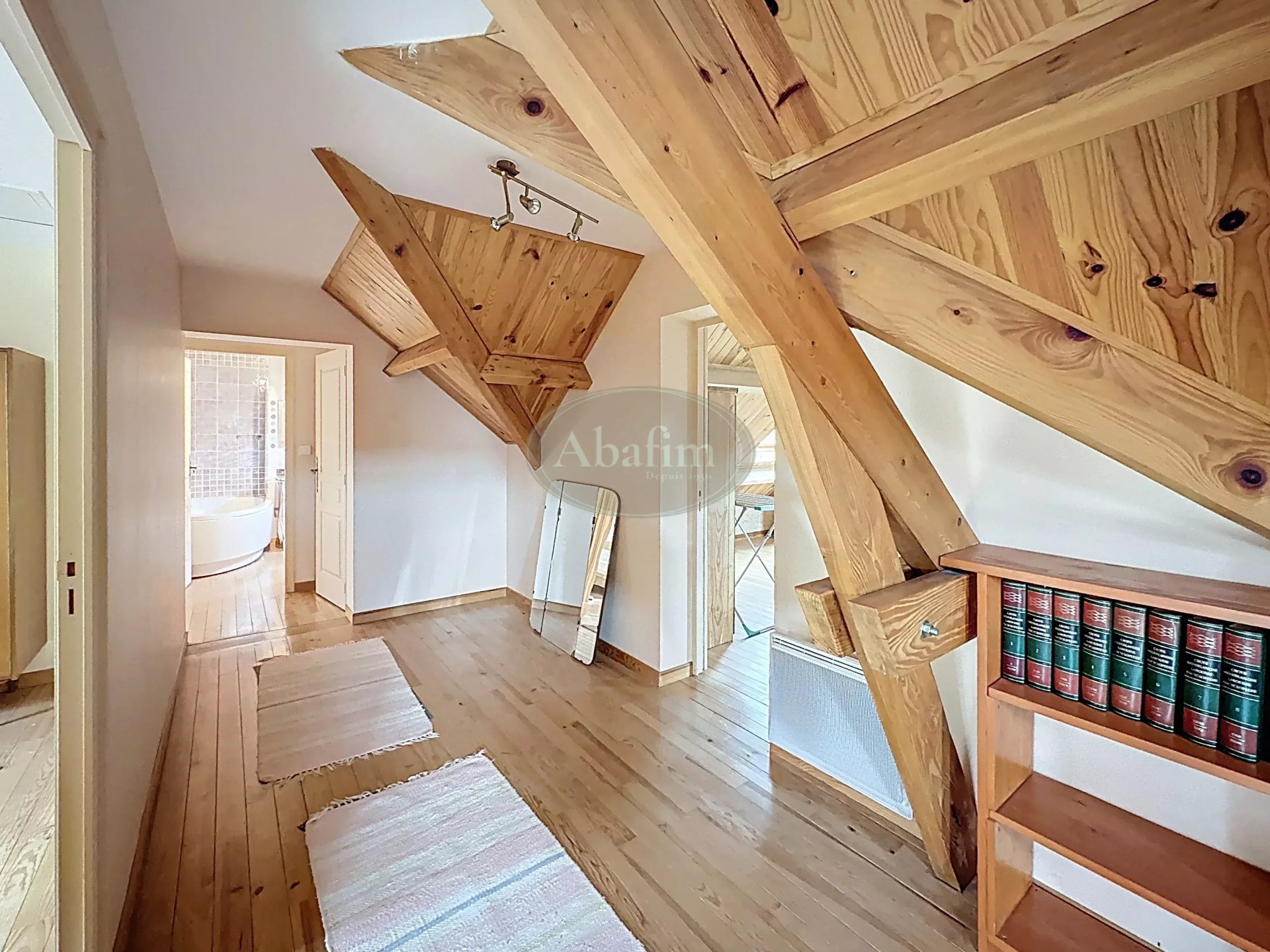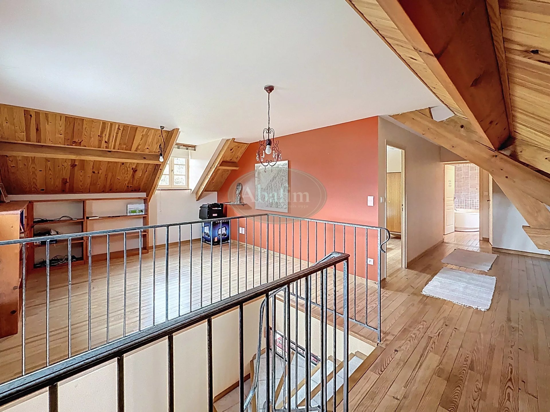 L'accès à l'étage se fait par un bel escalier en bois et fer.