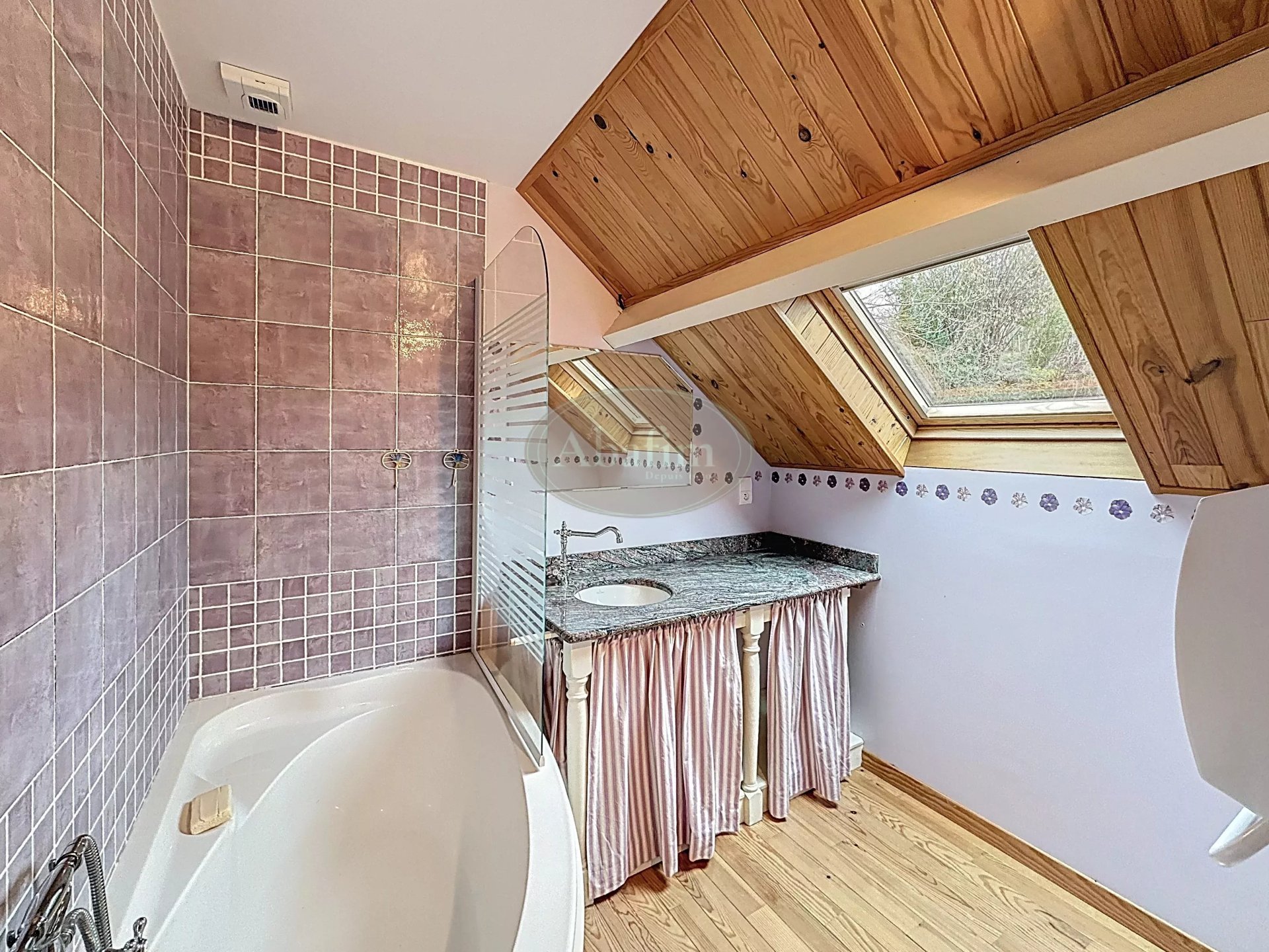 Les menuiseries sont en bois double-vitrage.