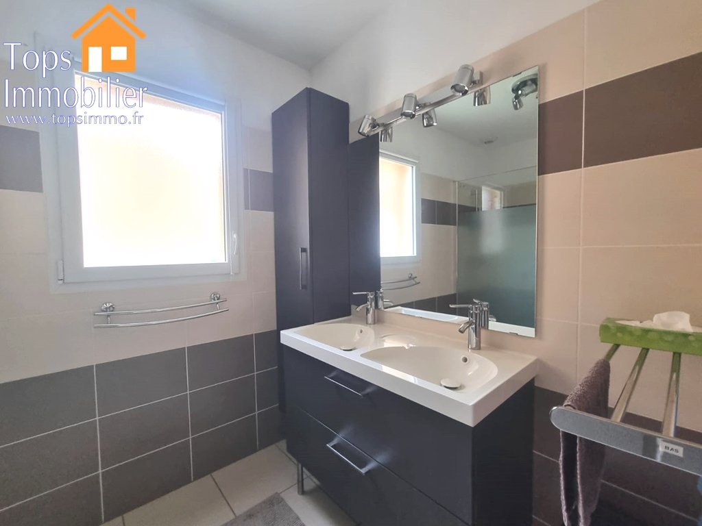 Agréable maison de plain-pied de 108 m², construite en 2016 et conçue pour les personnes à mobilité réduite, offrant de beaux volumes et des prestations de qualité.Elle se compose d'un vaste séjour très lumineux de 43 m² avec cuisine entièrement équipée, de trois chambres avec placards intégrés, ainsi que d'une grande salle de bains avec douche à l'italienne.