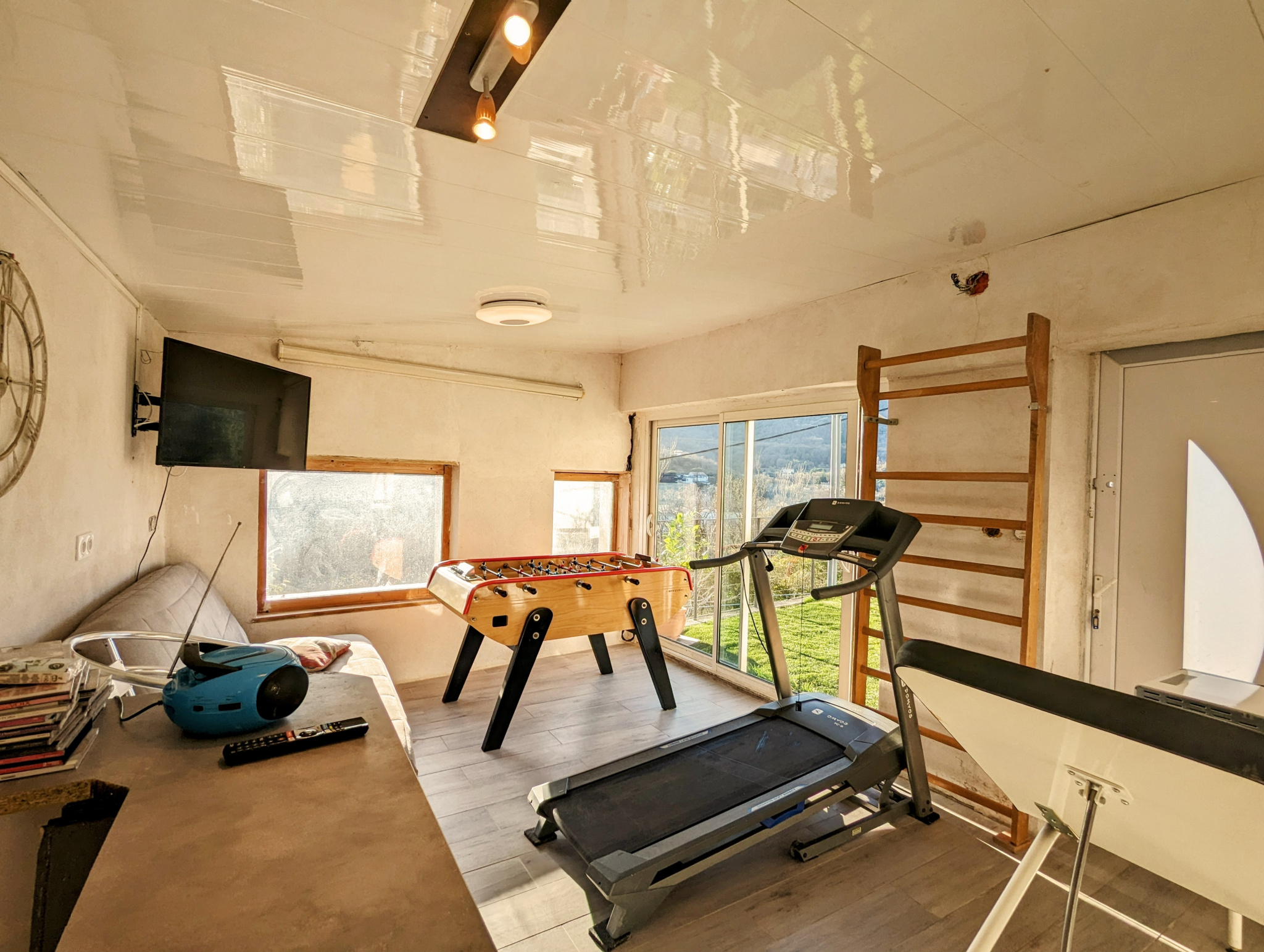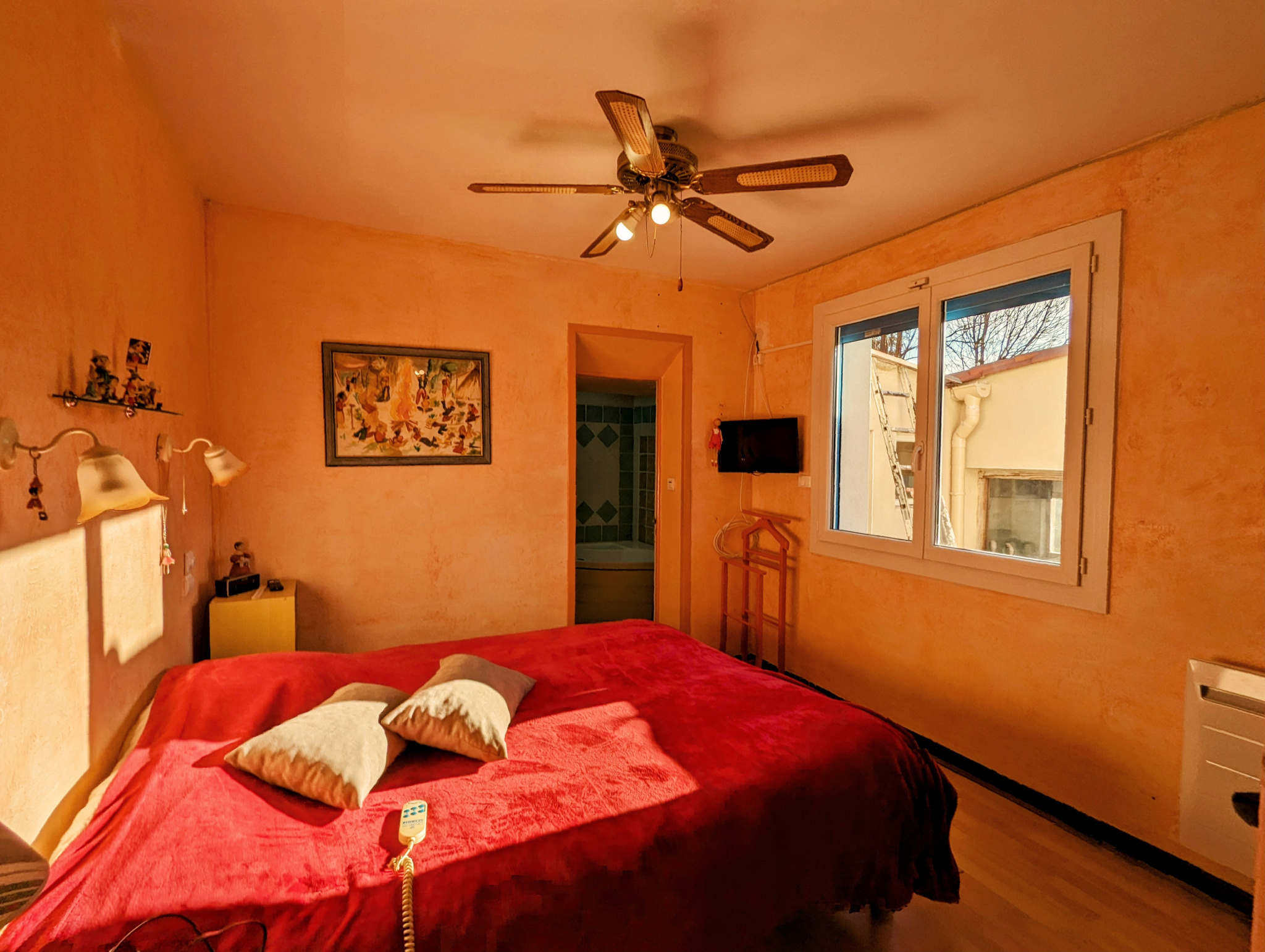 trois chambres dont une avec salle de bains privative et une autre avec salle d'eau attenante, un bureau, une salle de fitness ,une buanderie, un dressing et deux ateliers annexes.