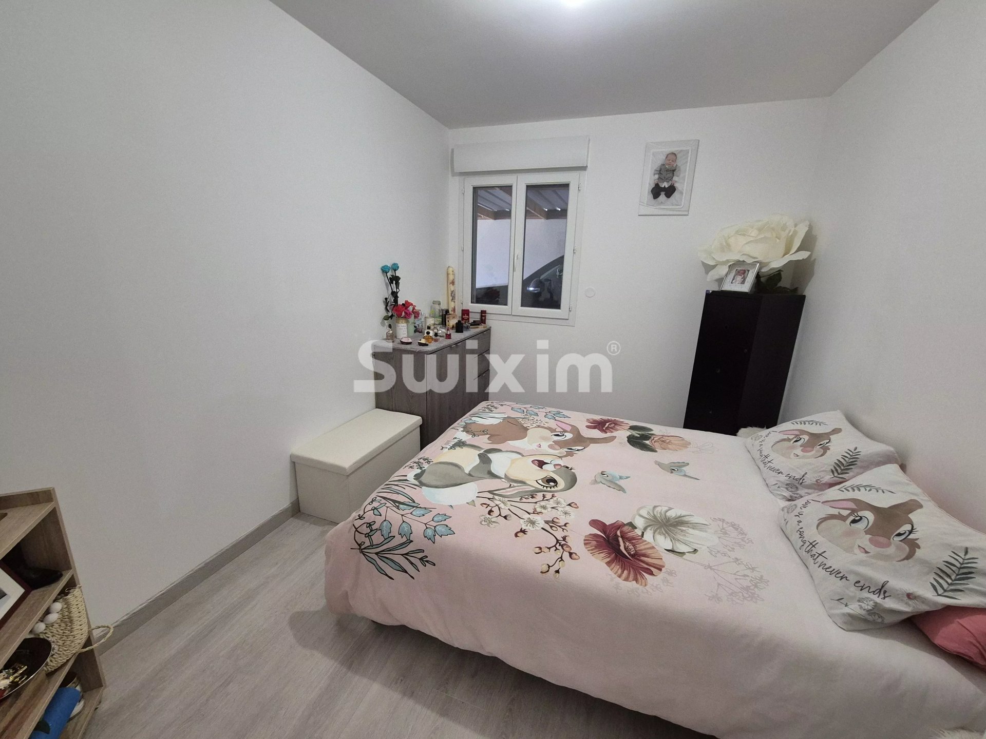 A l'étage: Trois chambres, dont une chambre d'enfant, une salle de douche avec toilettes intégrées.