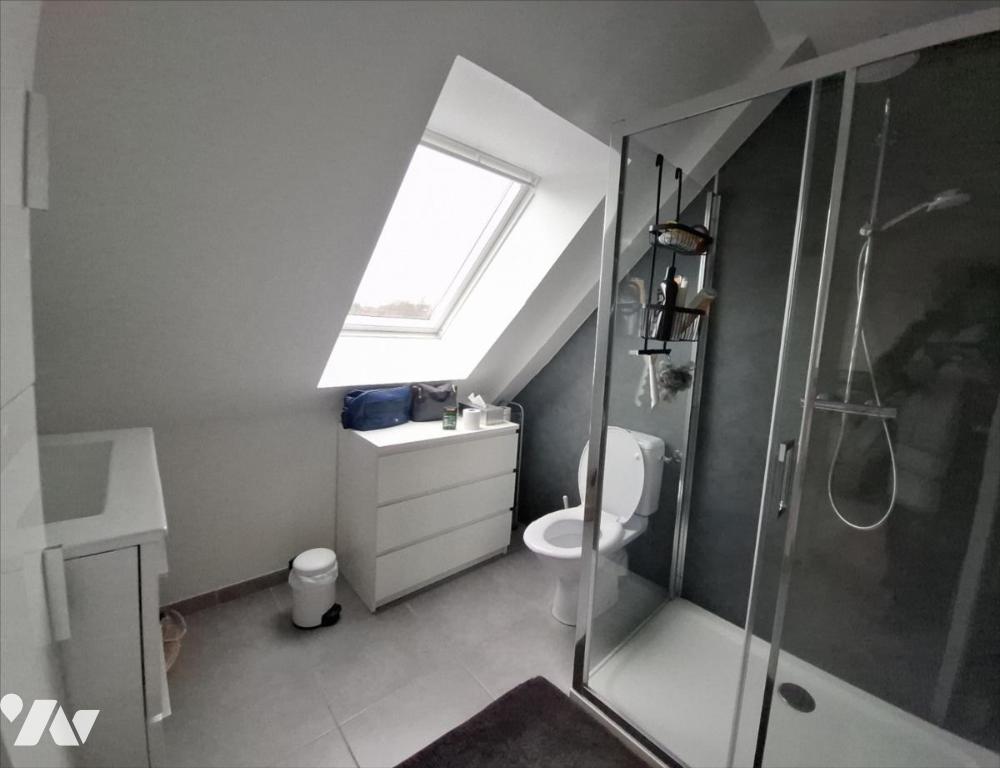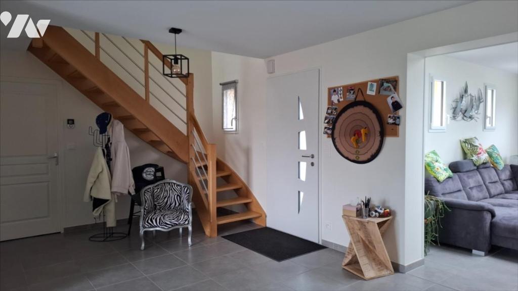 A proximité de la mer, des commerces et des écoles et collèges :Pavillon récent (2014) couvert en ardoise, mitoyen par le garage, comprenant :. au rez-de-chaussée : entrée, séjour avec en retour cuisine ouverte aménagée et équipée, salon, WC.. A l'étage : palier desservant : trois chambres, salle d'eau avec WC.Garage attenant.Cour bitumée devant, jardin sur l'arrière.Le tout pour une surface cadastrale de 958m².