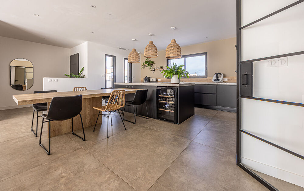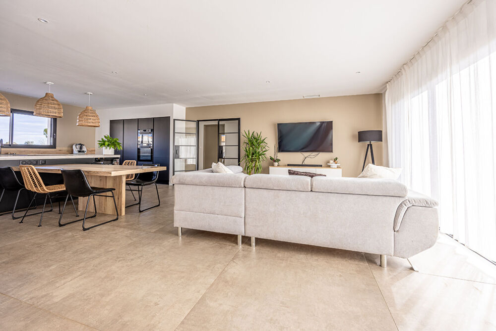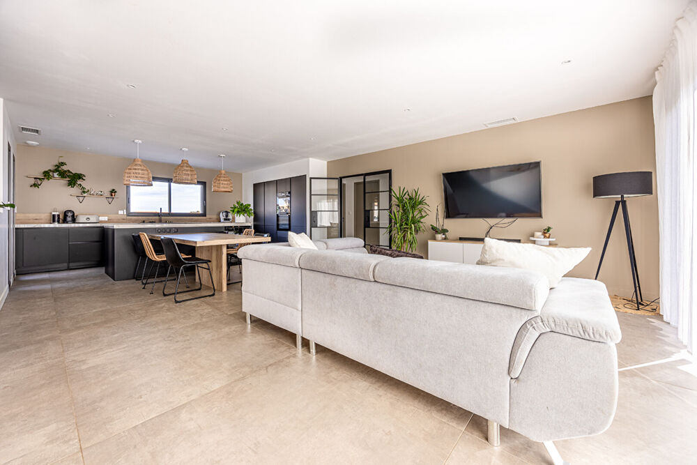 Maison moderne de plain-pied, de 121,45 m², construite en 2023. Elle se compose de 5 pièces, incluant 3 chambres, 1 salle de bain et 1 salle d'eau. Exposée au sud, elle bénéficie de luminosité et d'un environnement calme. Ce bien est équipé d'une cuisine aménagée et un chauffage performant grâce à une pompe à chaleur et un chauffe-eau thermodynamique. Une vaste terrasse de 55 m² complète l'ensemble sur un terrain de 411 m². Située dans un quartier paisible, cette maison est à proximité des transports et commodités, facilitant ainsi l'accès aux services quotidiens. Prestations soignées. (5.50 % honoraires TTC à la charge de l'acquéreur.)Etat général : Excellent