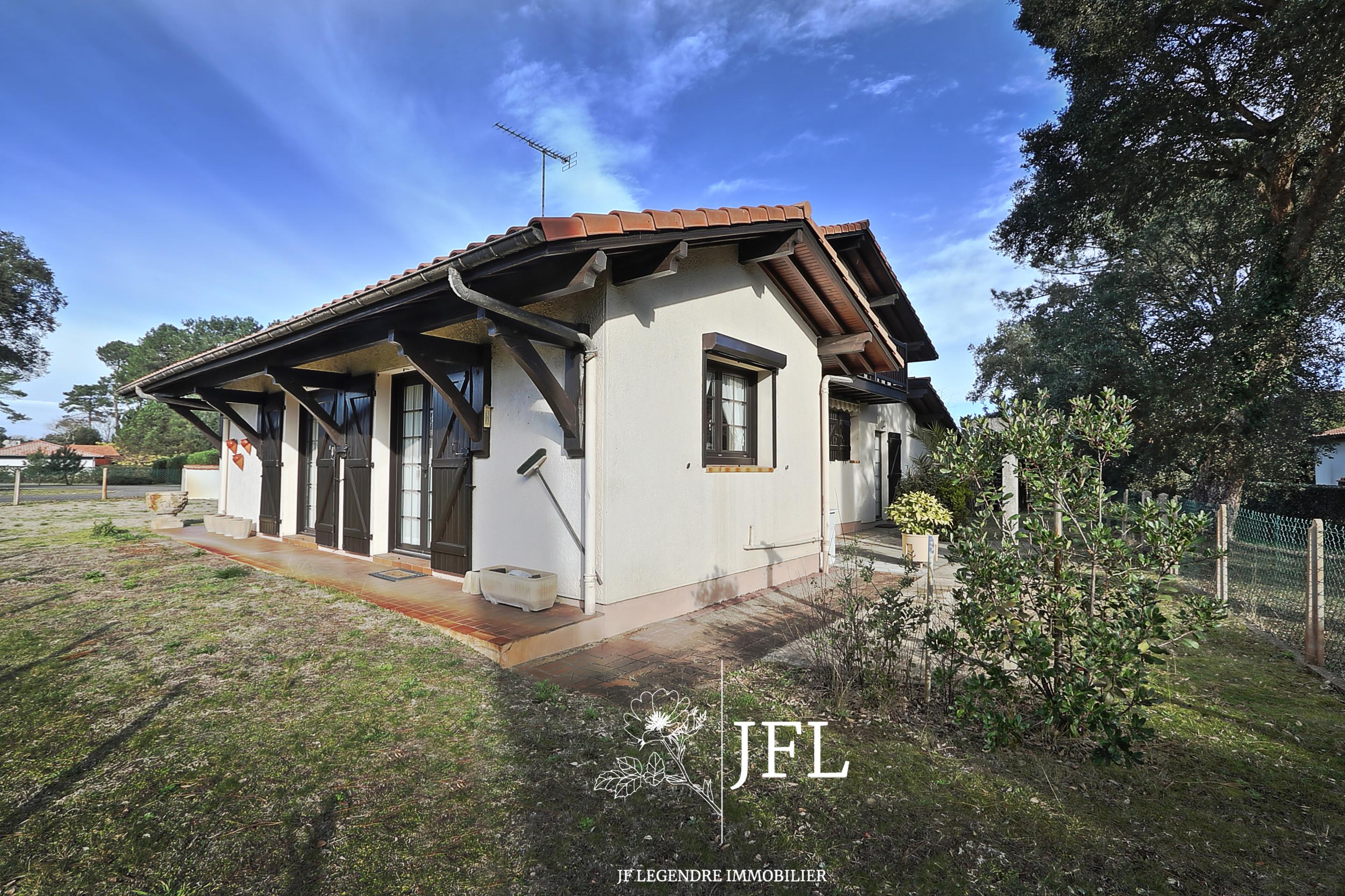 Dans un emplacement naturel privilégié et prisé, venez découvrir cette jolie villa landaise de type 5, proposant une surface habitable de 135 m² sur deux niveaux.Le rez-de-chaussée comprend une entrée avec placard, un salon/séjour avec cheminée ouverte, une cuisine séparée et équipée, une chambre de plus de 13 m², une salle d'eau avec douche italienne, un WC séparé avec lave-mains, une lingerie et un cellier.