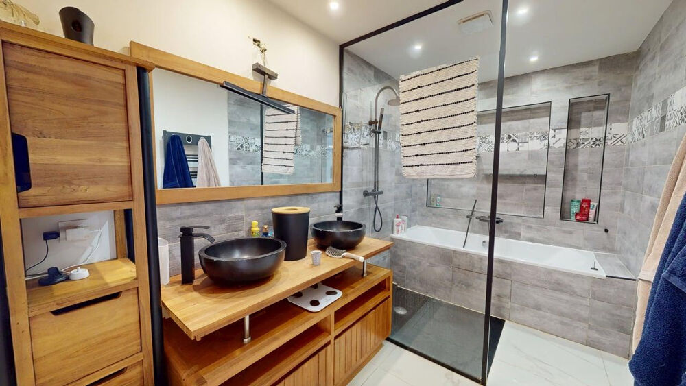Une véranda avec cellier complète ce niveau.A l'étage, un appartement indépendant avec balcon se compose d'une entrée, d'une cuisine indépendante, d'un séjour, de deux chambres et d'une salle de bain avec WC.Chaque logement bénéficie de prestations confortables : double vitrage PVC, volets roulants électriques, climatisation réversible.Cette configuration offre une grande flexibilité : habitation principale + logement familial, résidence avec revenus locatifs, ou investissement patrimonial dans un secteur recherché proche du littoral.Un bien rare sur le secteur, avec visite virtuelle disponible pour chaque logement.Contactez-nous dès maintenant pour découvrir tout le potentiel de cette propriété en exclusivité.