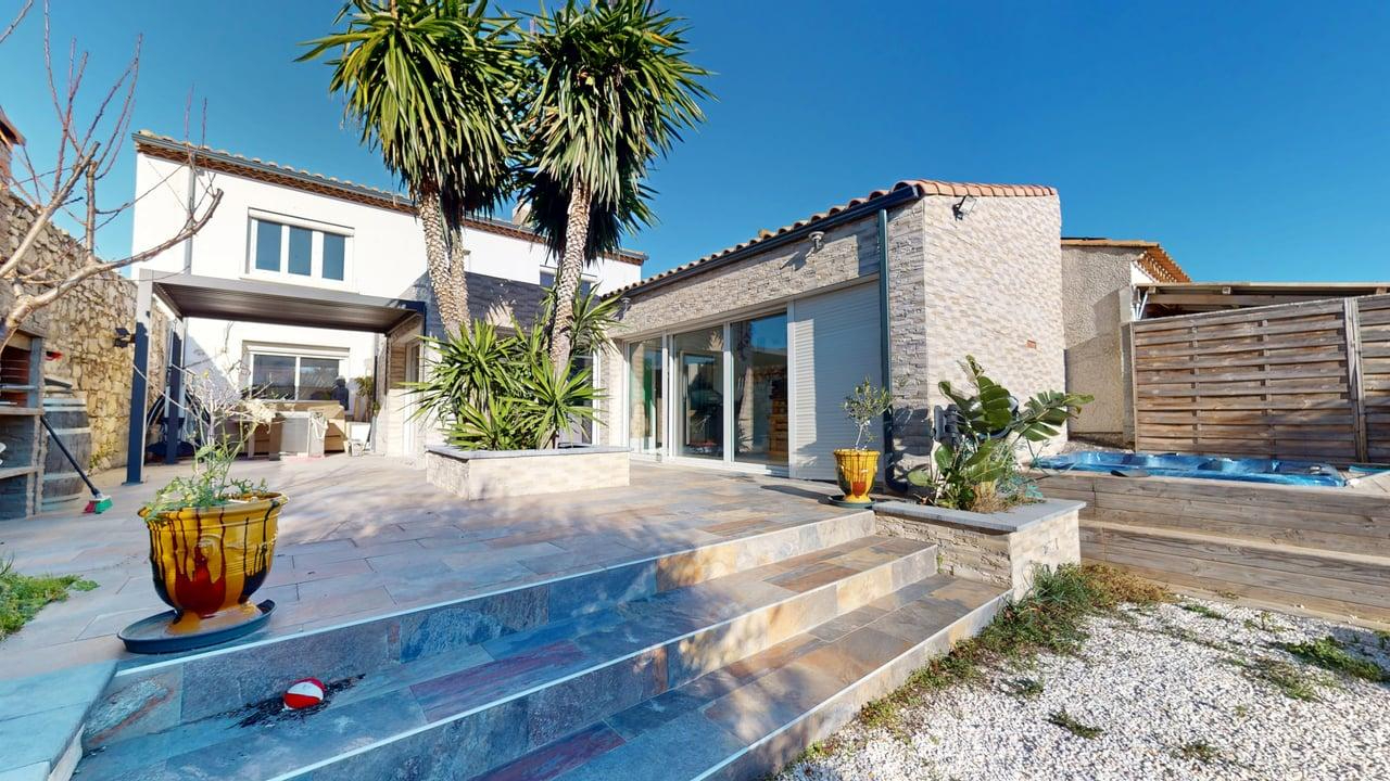 En exclusivité à Sigean, découvrez cette propriété rare composée de deux logements indépendants, idéale pour un projet familial ou un investissement locatif, à proximité immédiate de la mer.Dès l'arrivée, une grande cour privative permet le stationnement de plusieurs véhicules et est sécurisée par un portail automatique.Au rez-de-chaussée, une maison de plain-pied rénovée d'environ 127 m² habitables offre une entrée, trois chambres, une salle de bain avec douche, un WC indépendant, ainsi qu'une pièce de vie lumineuse d'environ 52 m² avec cuisine aménagée et équipée.De larges baies vitrées ouvrent sur une terrasse et un jardin avec piscine enterrée.