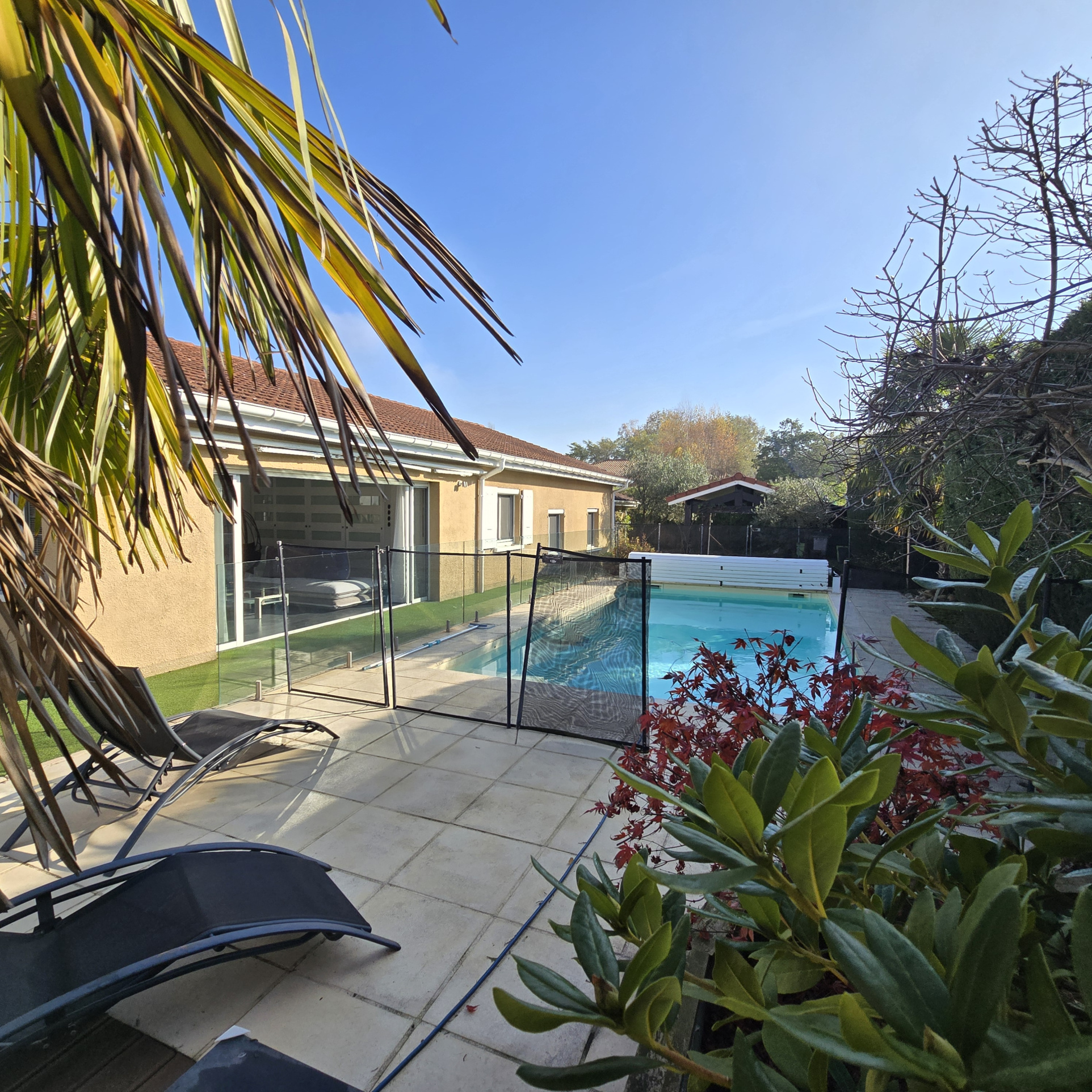 À vendre, rare sur le secteur : très belle maison de plain-pied, située à GRIEGES, à quelques minutes de MÄCON et du c'ur de la Bourgogne. Si votre priorité est d'avoir un grand espace de vie d'env 90 m2, très lumineux avec vue piscine, cette maison est faite pour vous ! Caractéristiques : ? Superficie habitable 192 m2 . Pièce de vie de plus de 90 m2 avec cuisine ouverte, grande baie à galandage ? Terrain clos et arboré de 860 m2 ? Piscine avec pompe neuve ? 3 chambres possibilité 4 ? 1 salle d'eau, possibilité 3 1 buanderie 1 garage Cadre de vie privilégié, à proximité des écoles et commerces, à deux pas de la nature, avec un accès facile à Lyon, Genève (1h30) et Paris.Les informations sur les risques auxquels ce bien est exposées sont disponibles sur le site Géorisques : www. georisques.gouv.fr.