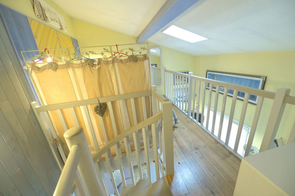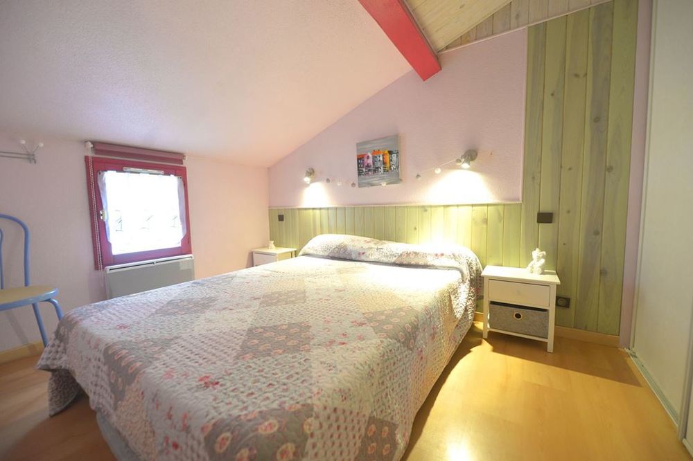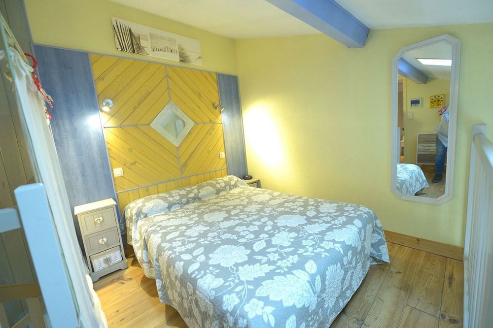 Elle se compose d'un salon séjour avec une cuisine ouverte et une salle d'eau avec placard et à l'étage, vous trouverez une grande chambre en mezzanine et une chambre séparée.