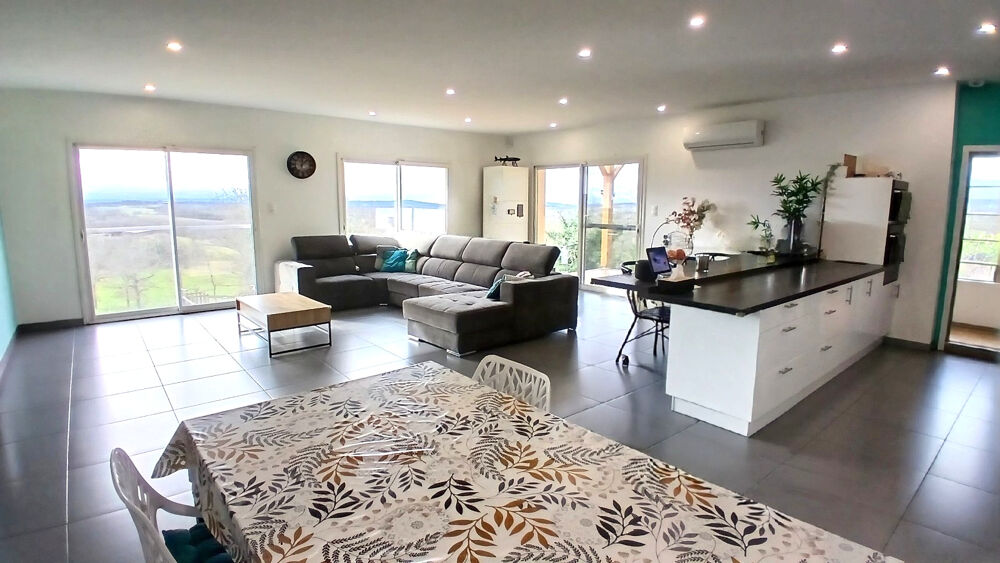 Dès l'entrée, la grande pièce de vie baignée de lumière impressionne par ses volumes et son ouverture sur l'extérieur, avec une vue dégagée sur le Causse. Un véritable sentiment d'espace et de liberté au quotidien.