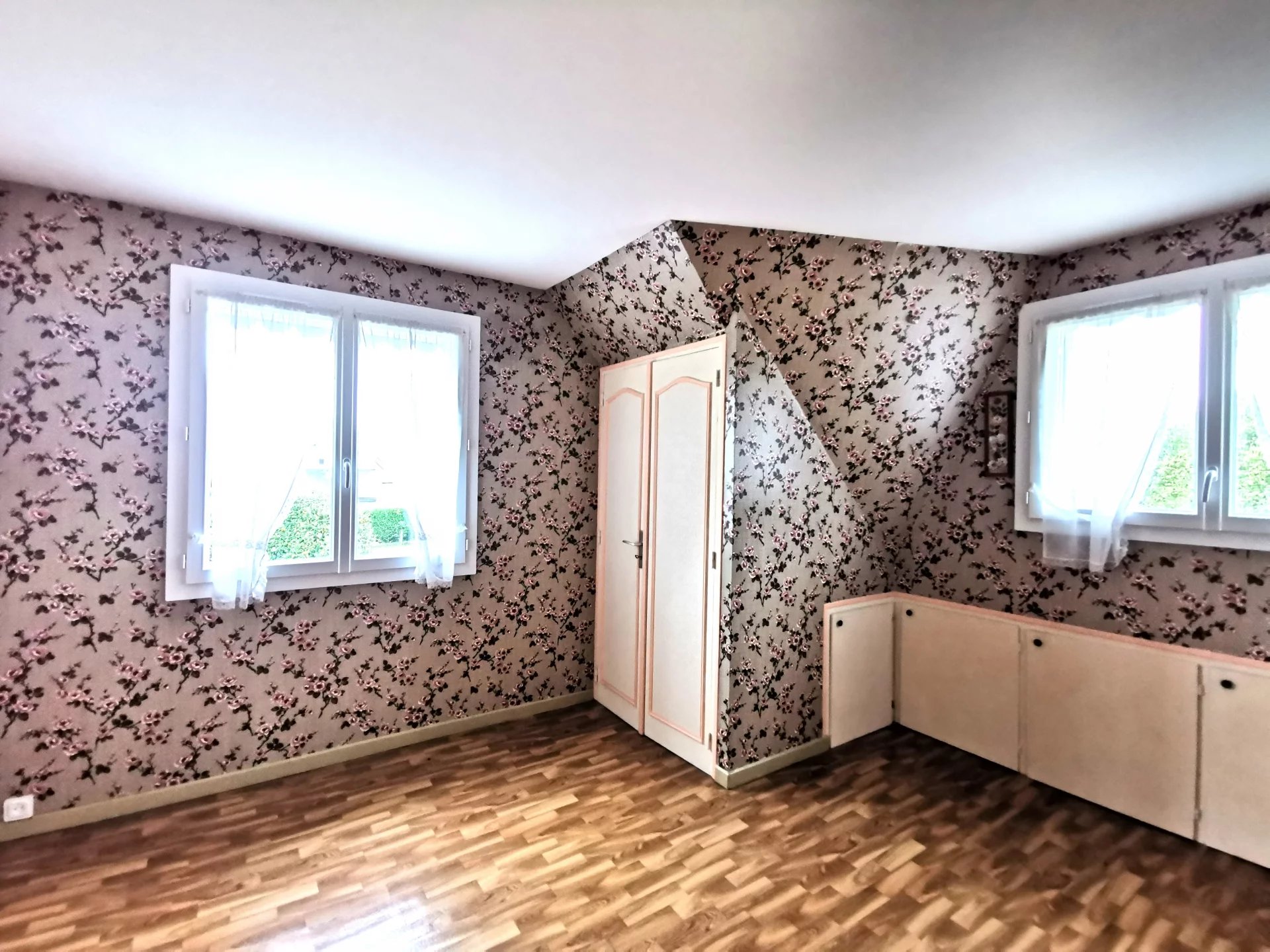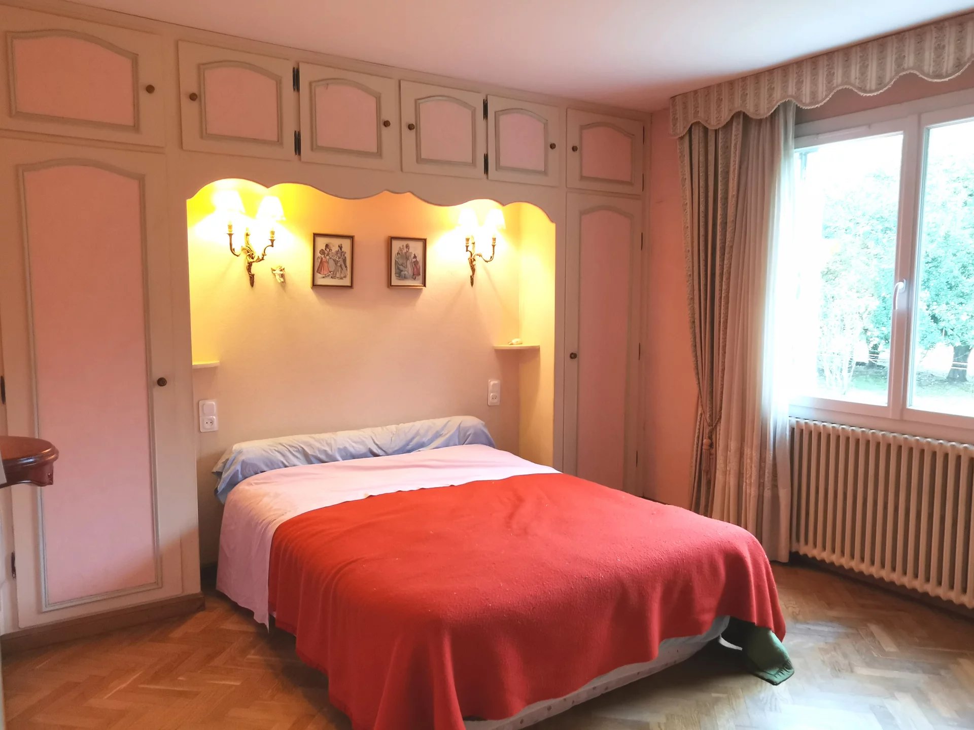 Toujours de plain pied, une grande chambre sur parquets d'origines en point de Hongrie avec placards.