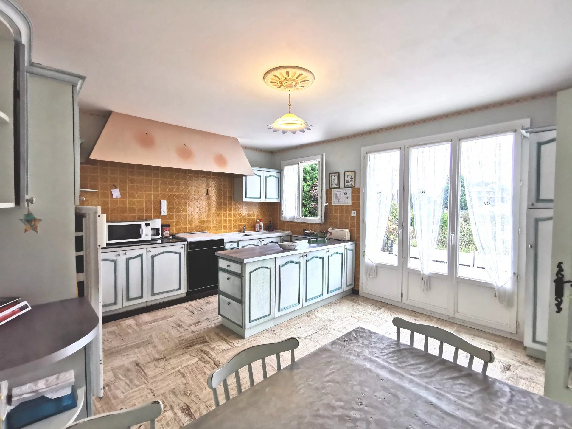 La maison aux vastes espaces est particulièrement lumineuse , exposée sud-est, soleil du matin au soir, nombreuses ouvertures tout autour de la maison.