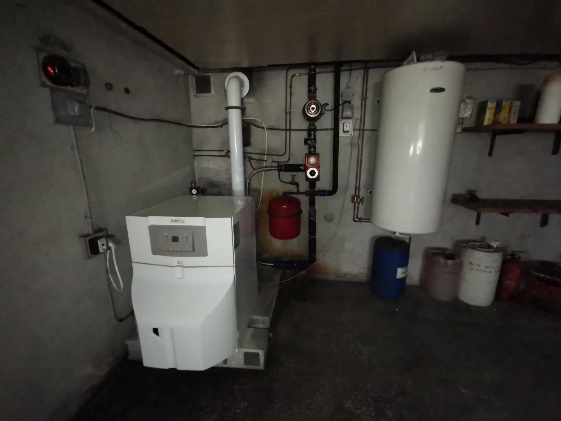 Chauffage au fioul (chaudière à condensation, production d'eau chaude via un cumulus) Thermostats sur tous les radiateurs, cuve enterrée de 3000 litres