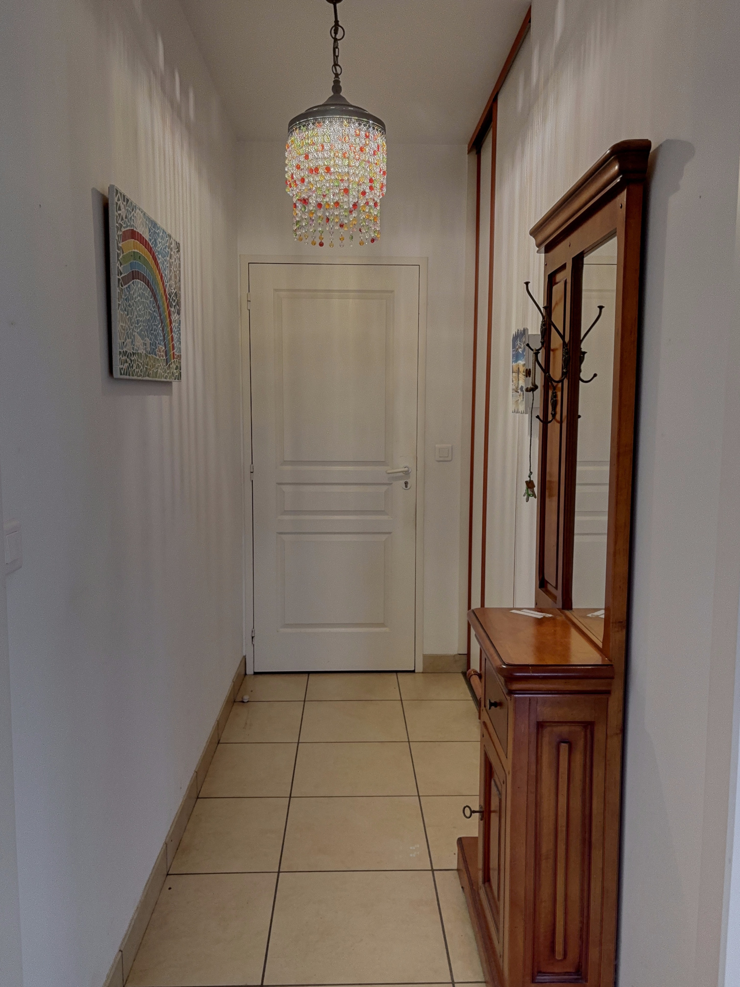 À l'extérieur, vous profiterez d'une agréable terrasse avec store, donnant sur un jardin clos et entretenu.