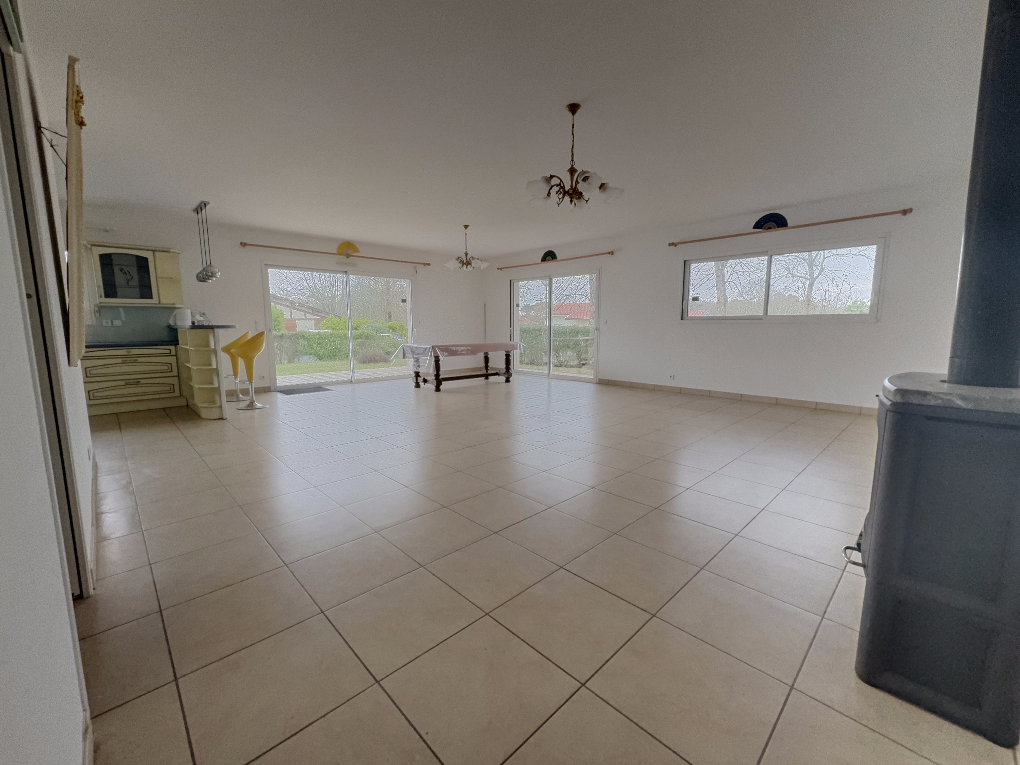 un séjour / salle à manger lumineux avec accès terrasse,