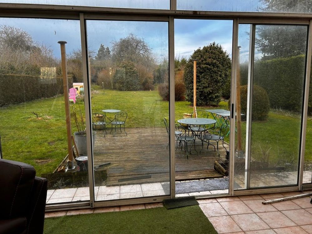 - Entrée, salon et salle à manger de 33m² avec poêle à bois, cuisine équipée de 14m², véranda de 60m², 2 chambres de 10m² et 14m², salle d'eau de 9m², wc et couloir.