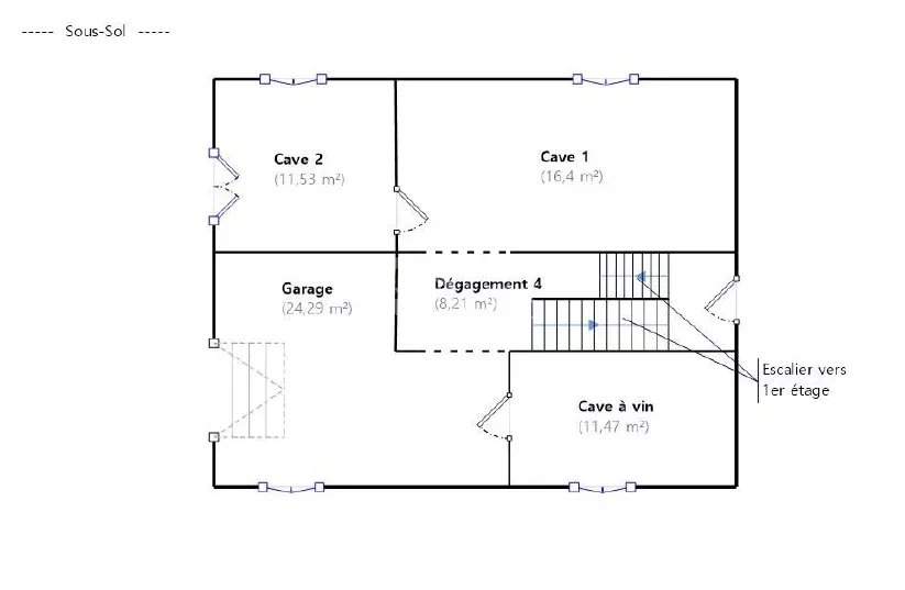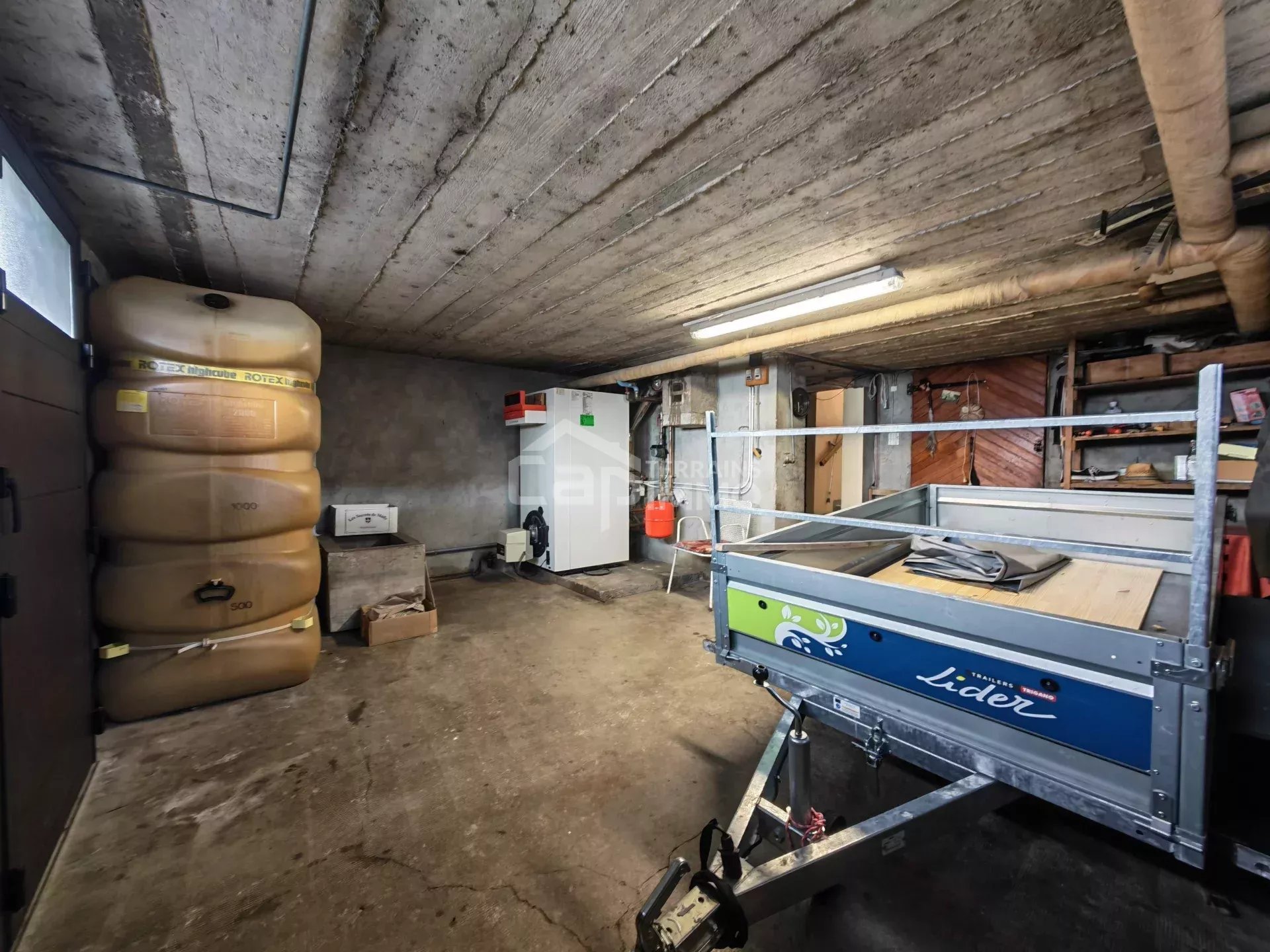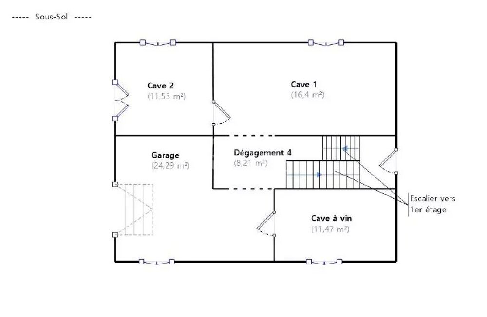 - Sous-sol complet de 72m² avec : Dégagement, réduit sous escalier, garage avec coin chaufferie, deux vastes caves et une buanderie.