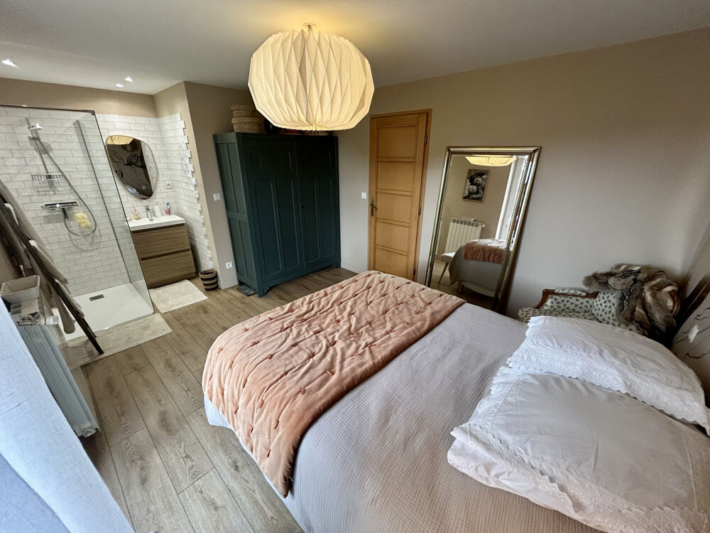 La maison principale de 210 m2 habitables, compose d'un salon, d'une salle à manger avec insert à bois, d'une cuisine, de cinq chambres dont une avec salle d'eau privative, de deux salles d'eau, deux WC, d'une buanderie ainsi que d'une agréable véranda. Dans une aile de cette bâtisse est aménagé un gîte indépendant.