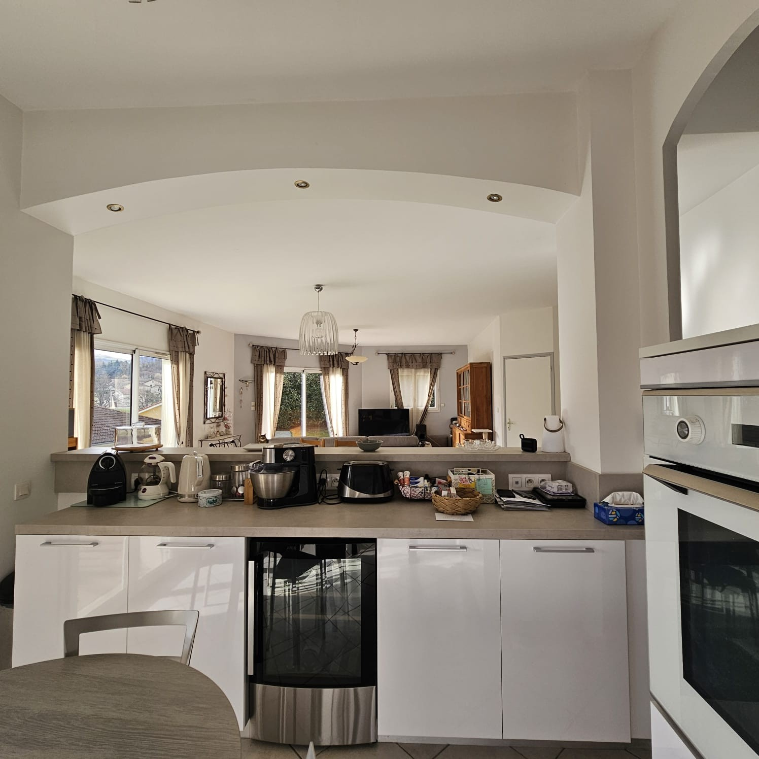 - Belle pièce de vie de 55m2 lumineuse avec cuisine équipée ouverte