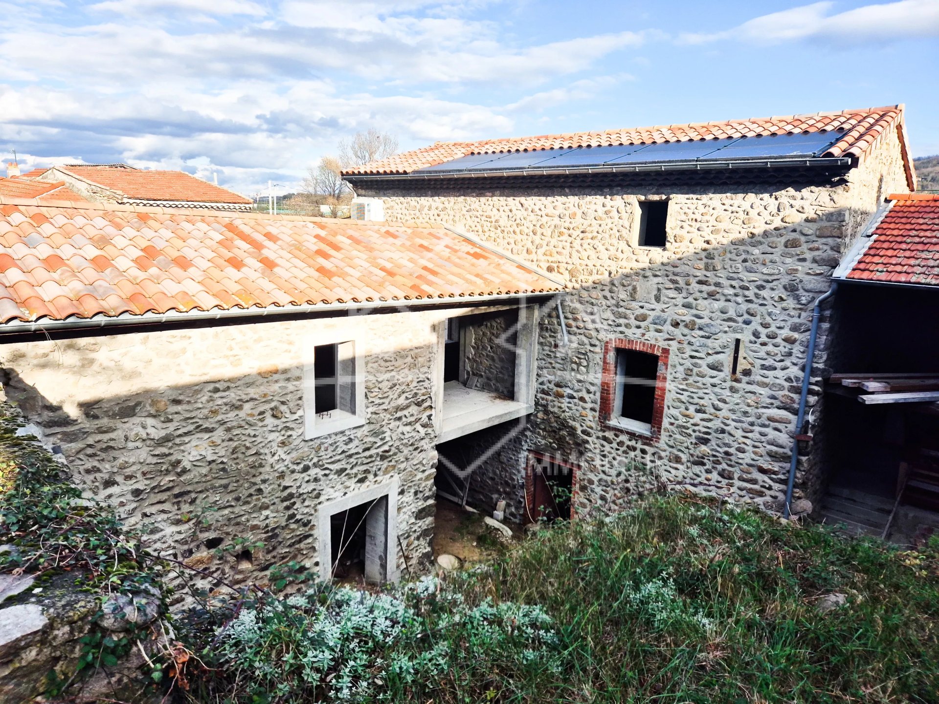 Les ouvertures offrent une belle vue sur cour et jardin, les menuiseries sont fournis, la toiture est neuve et des panneaux photovoltaiques sont installés.