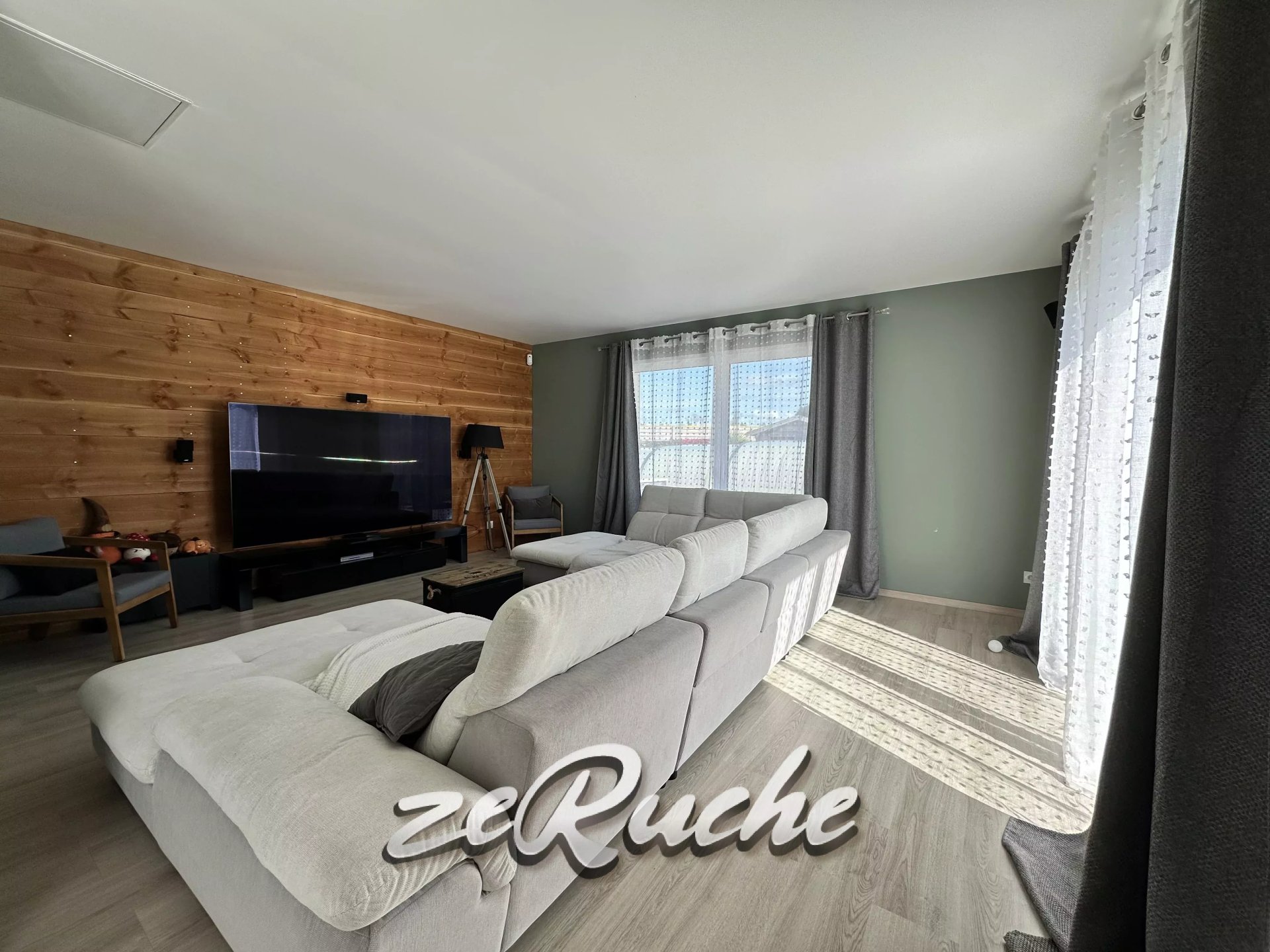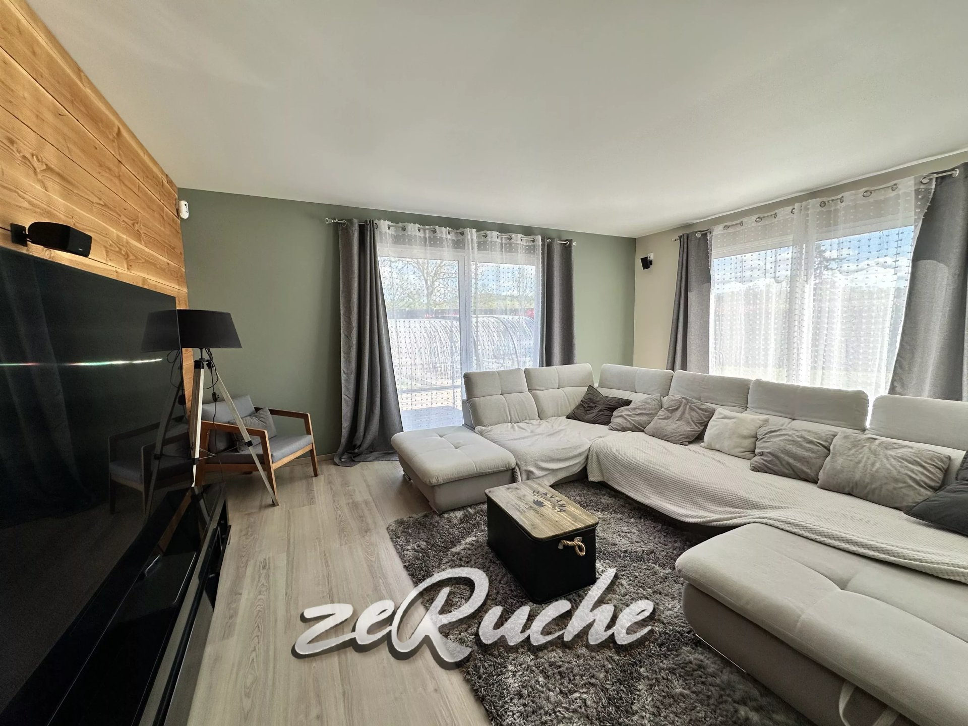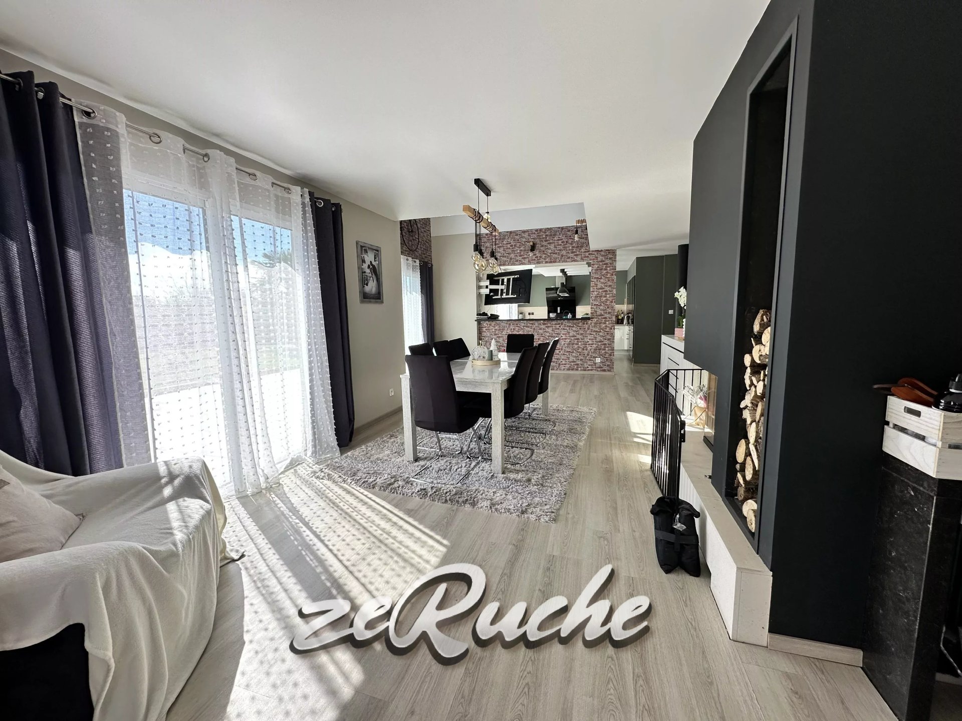 - Grande pièce de vie avec cheminée, baignée de lumière donnant accès direct à la terrasse exposée Sud.