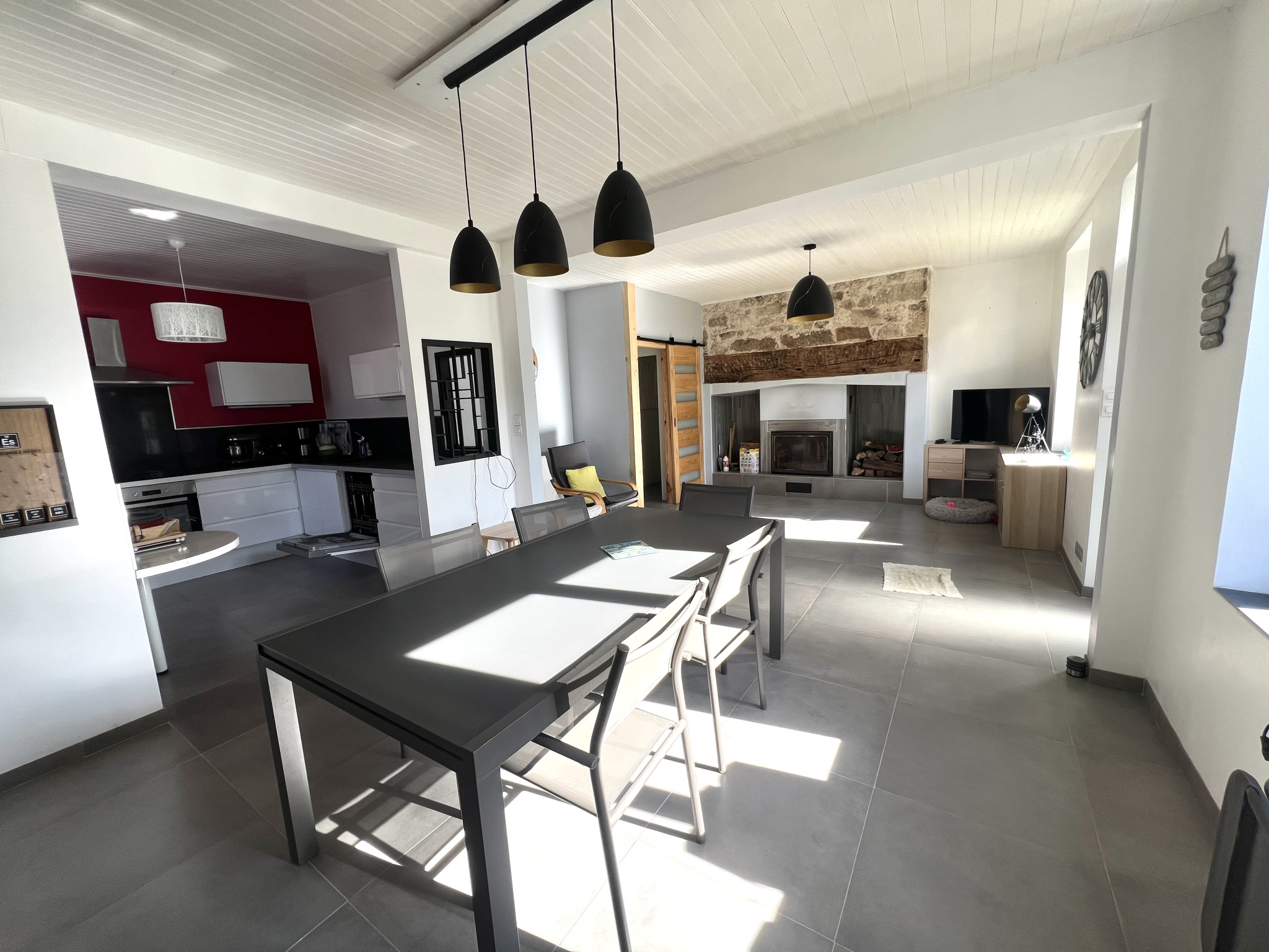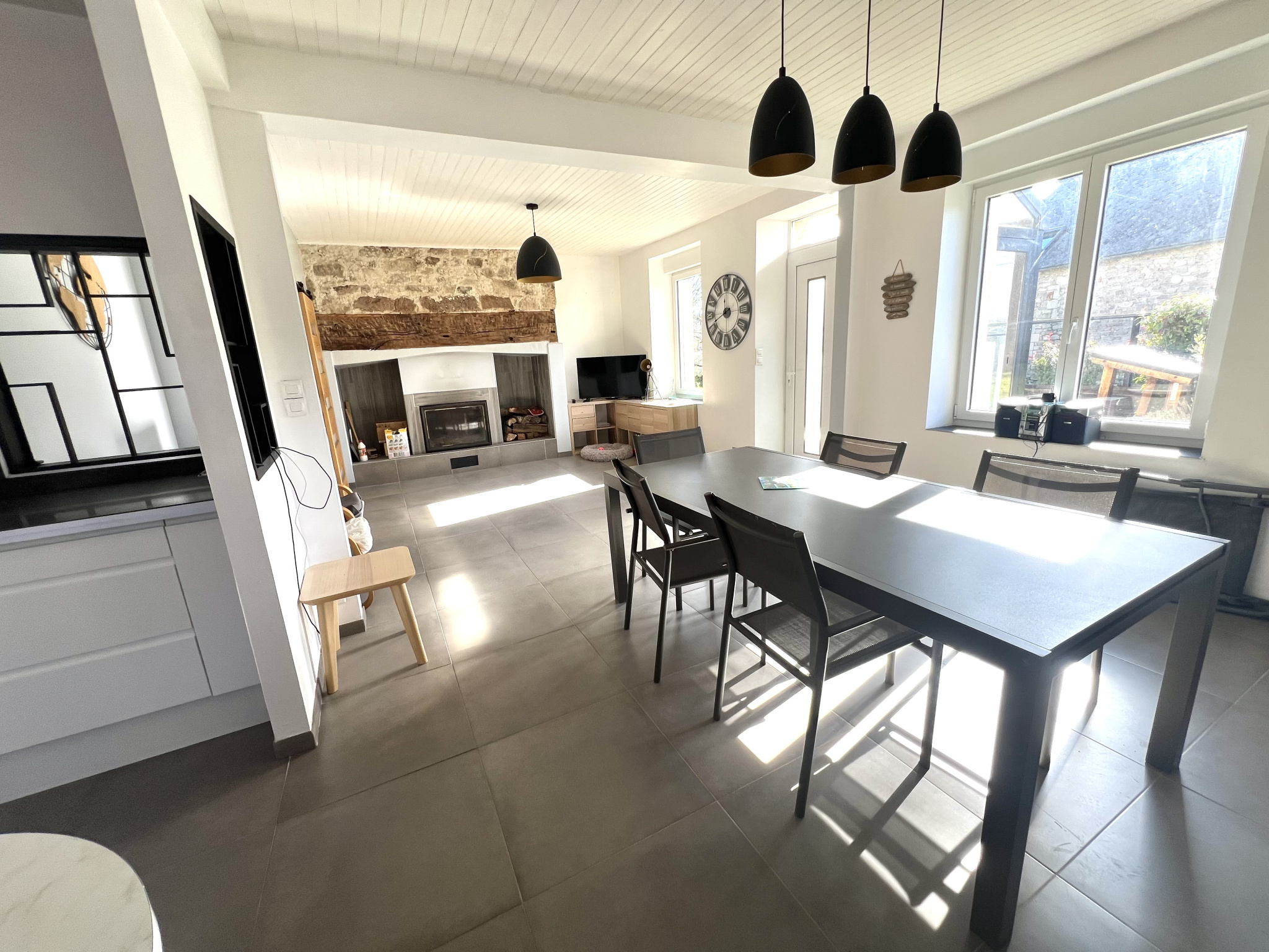 IMMODU19.FR / Maison en pierre, totalement rénové, composer au rez-de-chaussée d'un salon, salle à manger, cuisine ouverte, une buanderie et un WC. À l'étage, un palier dessert, trois chambres salle d'eau et WC. La maison contient des combles aménageables le tout sur un terrain d'environ 800 m2 avec un puits, piscine creusée, un cabanon pour mettre le bois et un atelier.Détails :