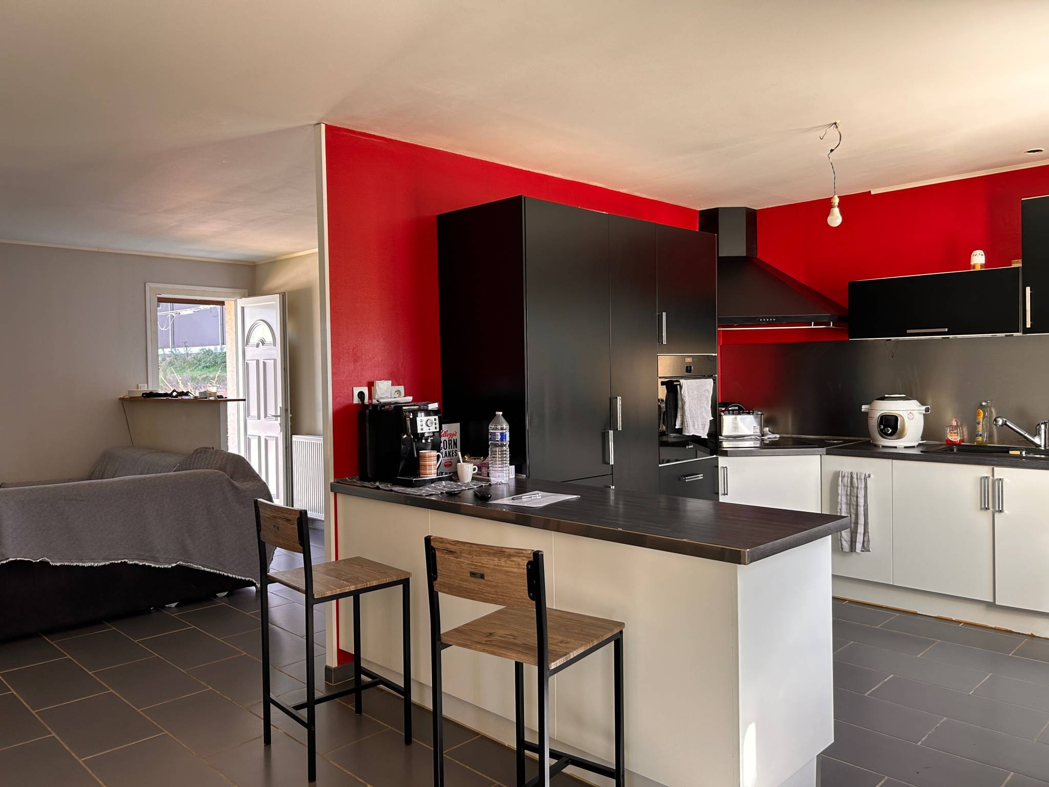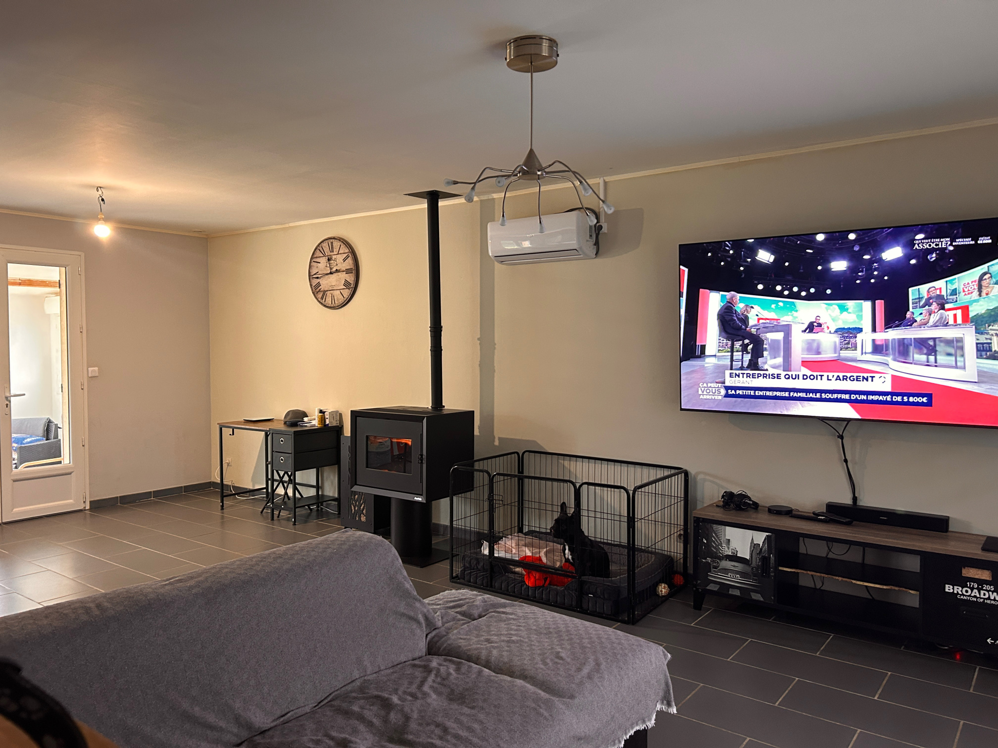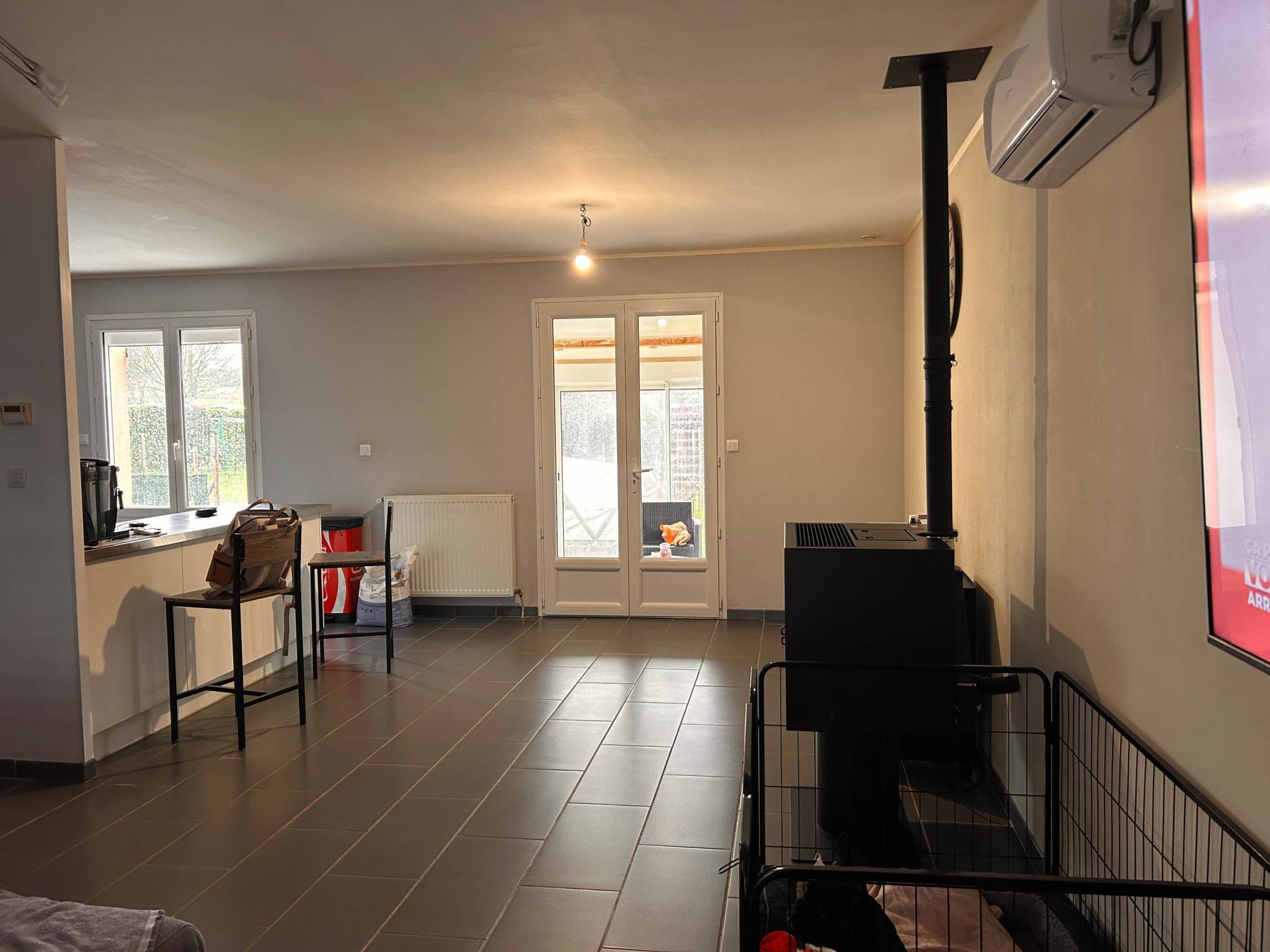 Chauffage centre gaz de ville + Poêle à granulés et clim réversible dans le séjour.