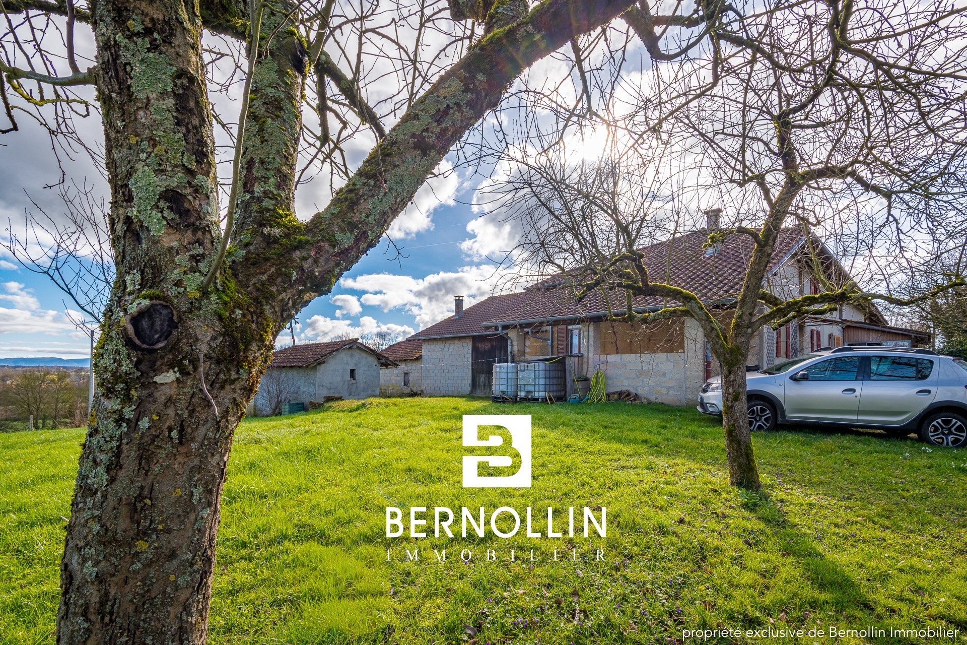 Cet ensemble immobilier se situe sur un terrain de 3200 m² avec verger, offrant une très belle vue dégagée sur le Revermont côté Est.