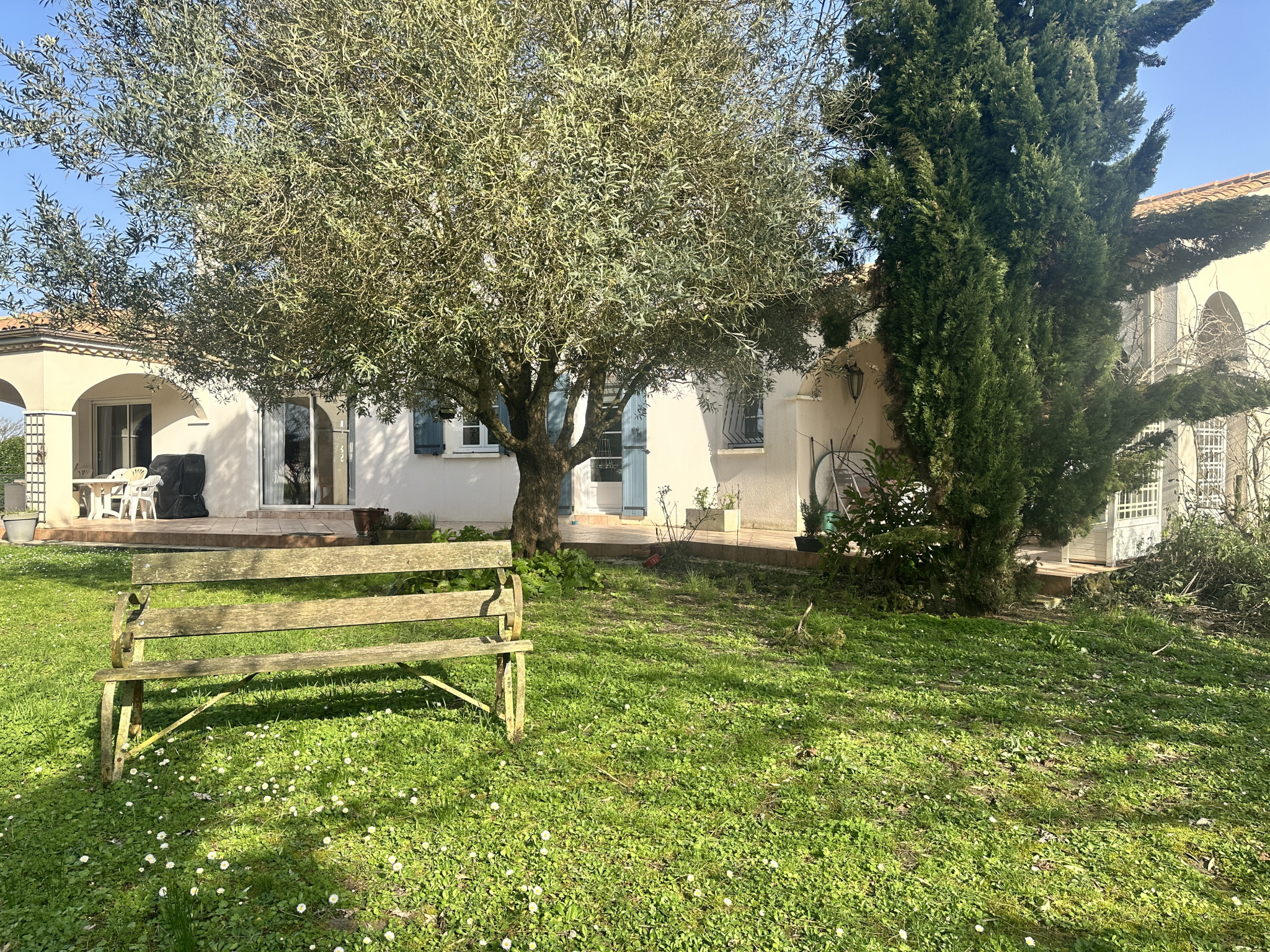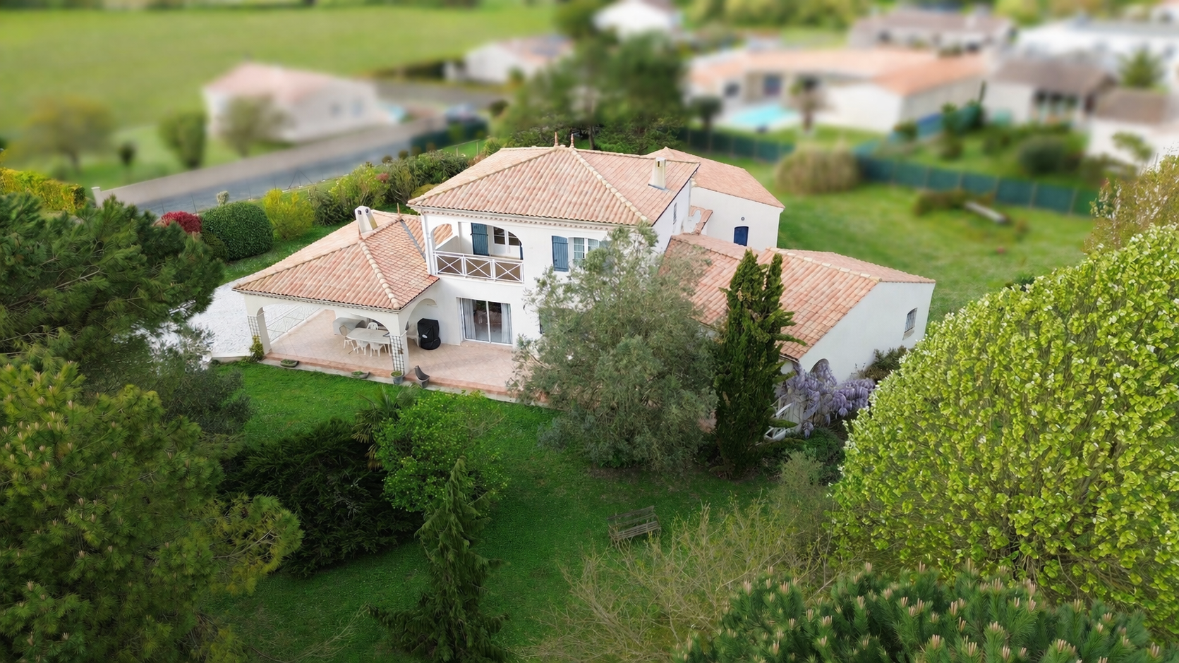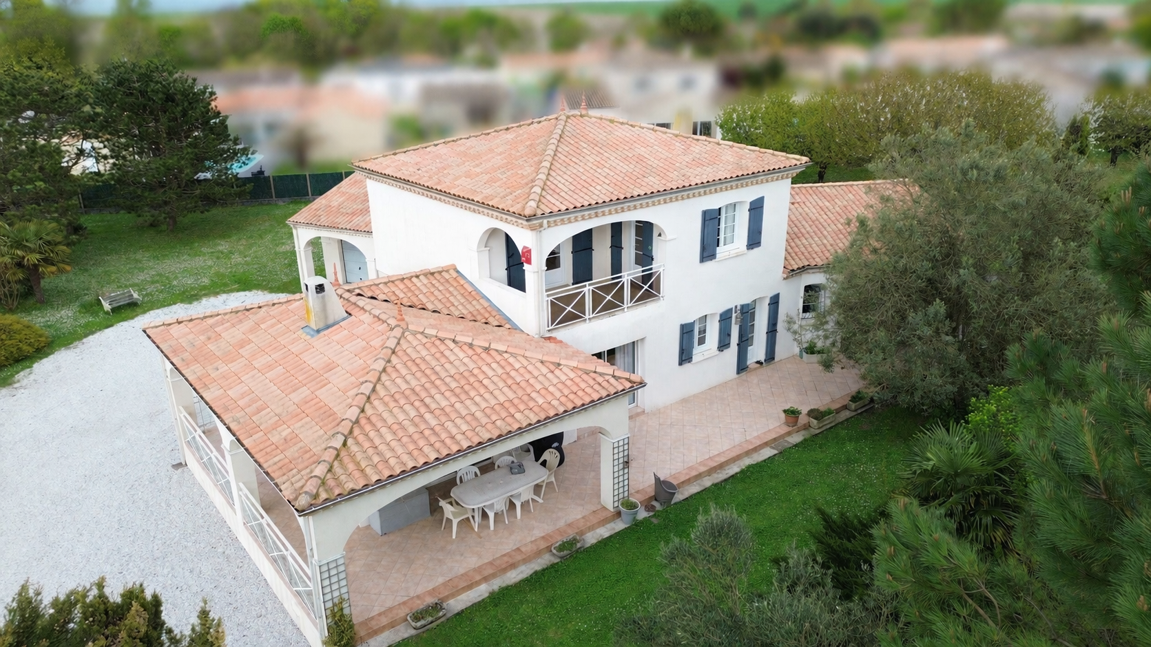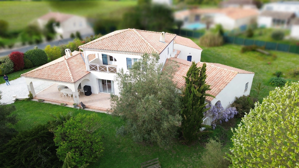 MESCHERS-SUR-GIRONDE (17) - Belle villa de construction traditionnelle édifiée en 1997 sur un terrain clos et arboré, entièrement constructible, de 5975 m2. Elle est située à seulement 5 minutes des plages dans un quartier calme. Elle offre environ 205 m2 habitables en très bon état. Le rez-de-chaussée s'ouvre sur un hall d'entrée avec espaces de rangements. Les différentes pièces s'articulent autour d'un bel espace de vie de 48 m2 agrémenté d'un poêle à bois. L'atmosphère y est chaleureuse. Cuisine indépendante entièrement équipée, coin buanderie, deux chambres dont une suite parentale de 36 m2 avec partie bureau et salle de bains privative. On y vit confortablement de plain-pied. A l'étage, un grand palier dessert deux chambres supplémentaires. Elles s'ouvrent sur un balcon couvert qui domine le parc. Salle d'eau avec toilettes. L'extérieur est un véritable havre de paix. Une grande terrasse de plus de 80 m2 dont une partie est couverte. Jardin paysager composé de nombreux arbres fruitiers. Double garage de 54 m2. Portail motorisé. Vide sanitaire accessible. Adoucisseur d'eau. Cette propriété se démarque par sa qualité de construction, ses volumes et sa réseve foncière en zone constructible.Détails :