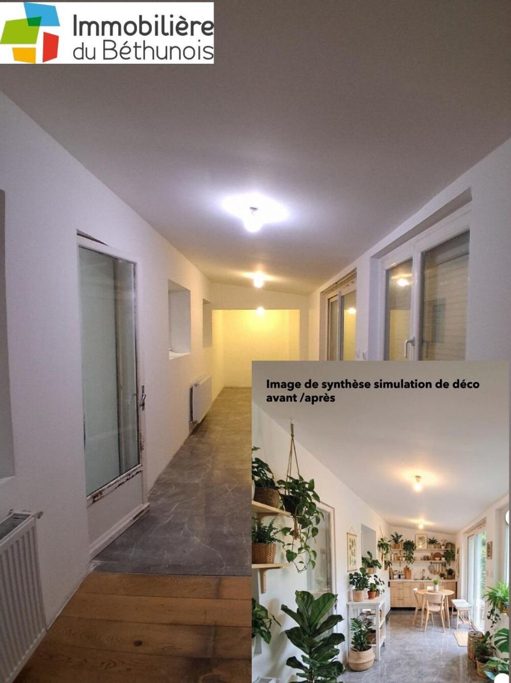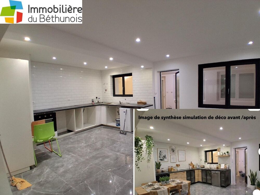 Béthune - MAISON 170 m² - LIBRE IMMÉDIATEMENT - OPPORTUNITÉ RARE. Coup de cœur assurée - Béthune - MAISON 170 m² - LIBRE IMMÉDIATEMENT - OPPORTUNITÉ RARE LIBRE - Départ des locataires : une maison disponible maintenant, sans délai ni contrainte. Rafraichissement - Entièrement rafraichi sol, mur plafond SPACIEUSE - 170 m² habitables + 68 m² de combles aménageables : volumes rares, potentiel énorme. RÉNOVÉE - Cuisine XXL de 24 m², 2 salles de bain italiennes, escalier industriel : le cachet moderne clé en main. LUMINEUSE - Séjour traversant de 34 m² prolongé par une véranda de 19 m² ouverte sur jardin clos. ÉCONOMIQUE - PAC air/eau DAIKIN ALTHERMA + insert pellets Flamme Verte : confort maîtrisé, charges optimisées. FONCTIONNELLE - 4 chambres, garage, buanderie, local technique : une maison pensée pour le quotidien. CONNECTÉE - Fibre optique, VMC récente, TAL conforme : prête à vivre, sans travaux. STRATÉGIQUE - Secteur AUCHAN, proche centre-ville, gare et axes : un emplacement qui valorise ton investissement. ATTRACTIVE - 194 990 € pour une maison de ce gabarit à Béthune : un rapport surface/prix imbattable. Bien libre d'occupation - Vente immédiate Les premières visites feront la différence. A propos de ses images en incrustation Image générée par Intelligence Artificielle - Simulation de décoration La photographie en incrustation est une simulation virtuelle réalisée par Intelligence Artificielle à partir des photos réelles du bien. Elle a pour unique objectif d'aider le futur acquéreur à se projeter dans les espaces et à visualiser le potentiel décoratif du logement. Cette image ne constitue en aucun cas un engagement contractuel sur l'état, l'aménagement ou la décoration du bien tel que vendu. Seules les photos réelles et les documents techniques font foi. Un service personnalisé offert par votre agent Parce que chaque acquéreur a sa propre vision de son futur chez-soi, je vous propose de réaliser une simulation personnalisée avec vos propres meubles et votre style de décoration, accompagnée d'un rapport visuel sur mesure vous permettant de vous projeter encore plus précisément dans votre future maison. Ce service est offert dans le cadre de mon accompagnement personnalisé. Stéphane LAGA Enregistré à ARRAS RSAC N° 788518421. Le prix du bien net vendeur est de 194 000,00 euros plus 0,51% TTC d'honoraires charge acquéreur soit un prix total de 194 990,00 euros. Le bien est à vendre par l'intermédiaire de l'agent commercial Stephane LAGA immatriculé au RSAC de arras, sous le numéro 788518421.* Prix net, hors frais notarié, d'enregistrement et de publicité foncière.