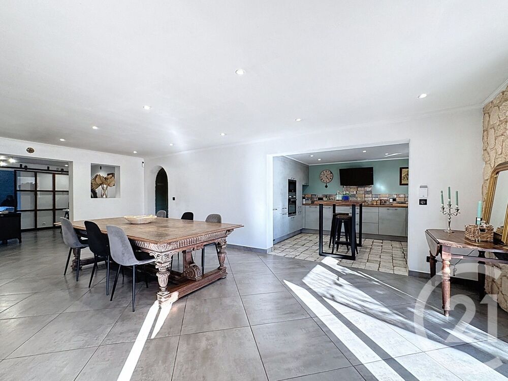 Implantée au calme, à deux pas du centre-ville et des écoles, 25 mn de l'Aéroport de Nice, 10 mn de Cannes cette maison de 215 m² entièrement rénovée coche toutes les cases :