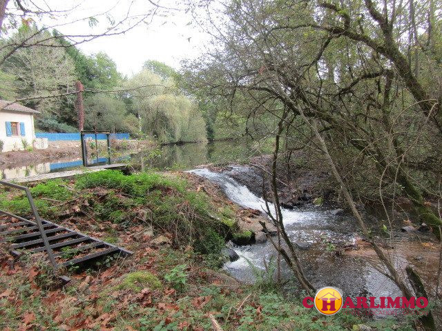 Ancien moulin transformé en maison d'habitation comprenant tout de plain pied cuisine équipée ouverte sur grand salon / salle à manger avec poêle à pellets, 3 chambres, salle de bains, wc, garage attenant environ 70 m² au sol, prés, île.Huisseries double vitrage, chauffage pompe à chaleur.