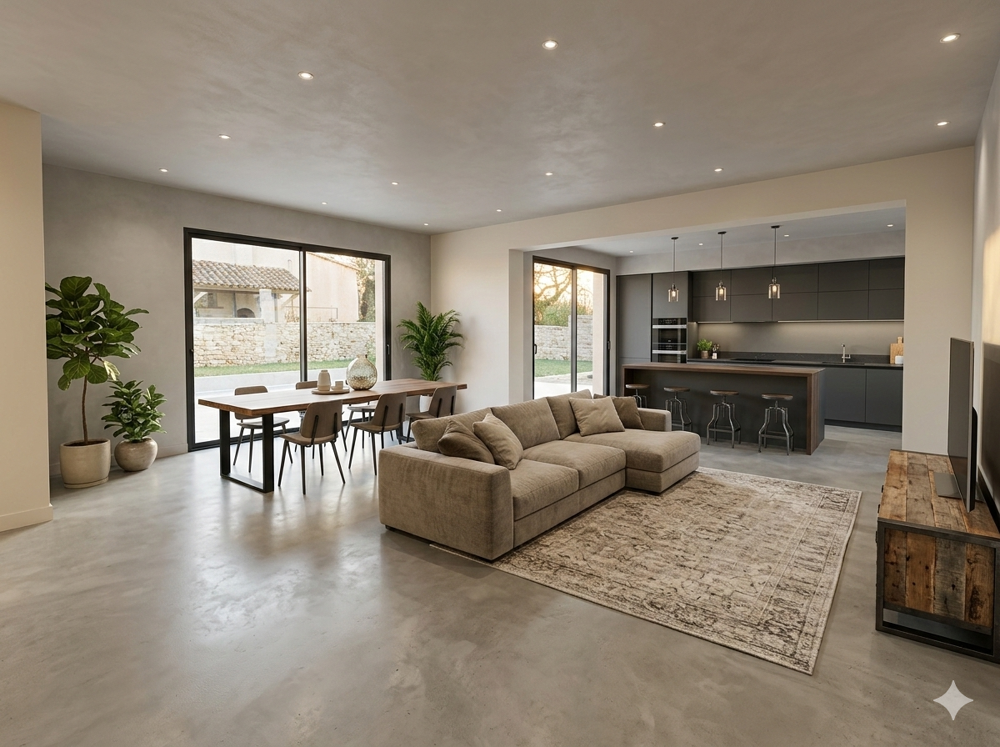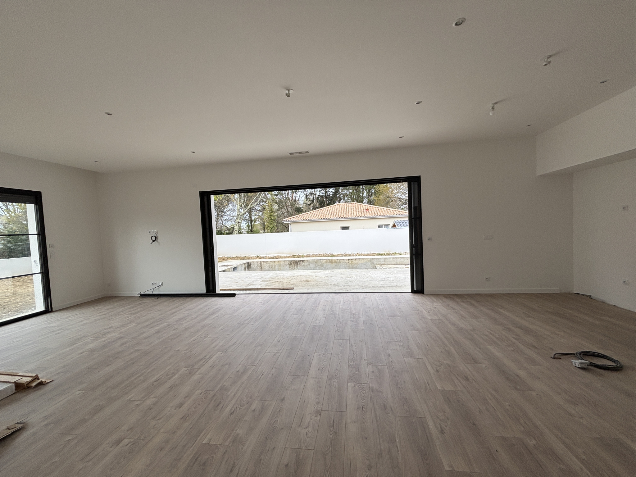 Espace de Vie Lumineux et Ouvert : Une entrée accueillante ouvrant sur un grand salon-séjour baigné de lumière. Ce séjour dispose de superbes baies vitrées à galandage donnant directement sur la piscine, créant une ouverture totale sur l'extérieur !