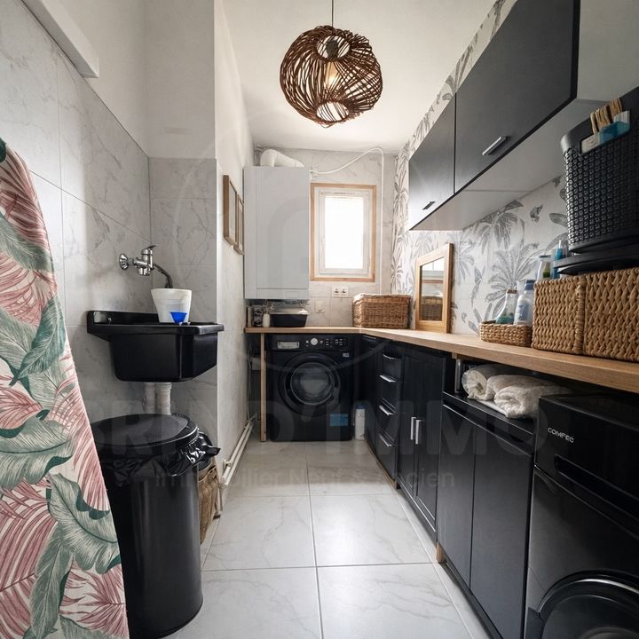 La cuisine, lumineuse, aménagée et équipée, bénéficie également d'une ouverture sur l'extérieur, idéale pour profiter pleinement des beaux jours.