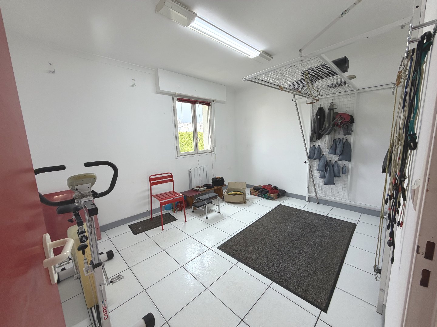 L'ensemble est parfaitement entretenu avec un carrelage blanc uniforme sur toute la surface, apportant une grande luminosité et une facilité d'entretien immédiate.