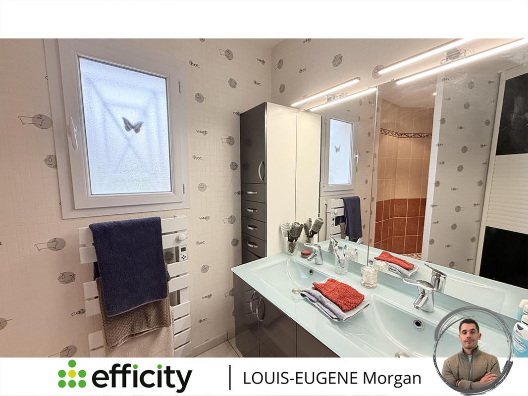 - Une salle de bains (7 m²) comprenant une douche, un meuble double vasque et un sèche-serviettes. Vous y trouverez des espaces de rangement.