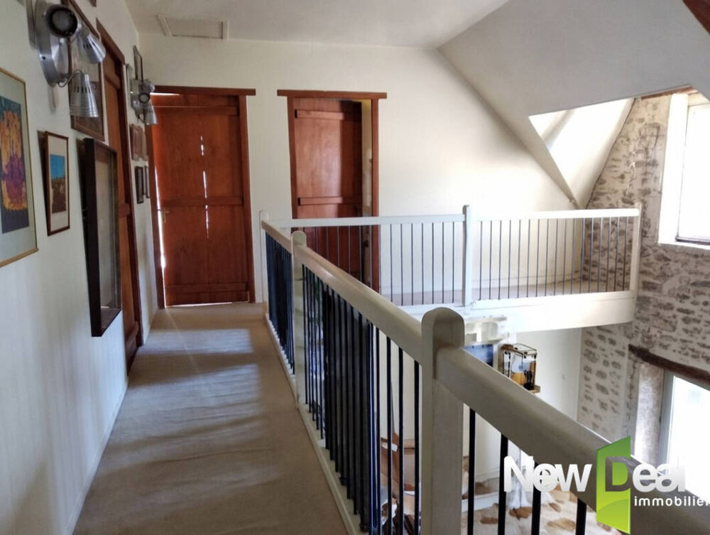 A l'étage : trois chambres dont une de plus de 17 m², WC indépendants et salle-de-bains ainsi qu'une coursive surplombant le salon / salle-à-manger.