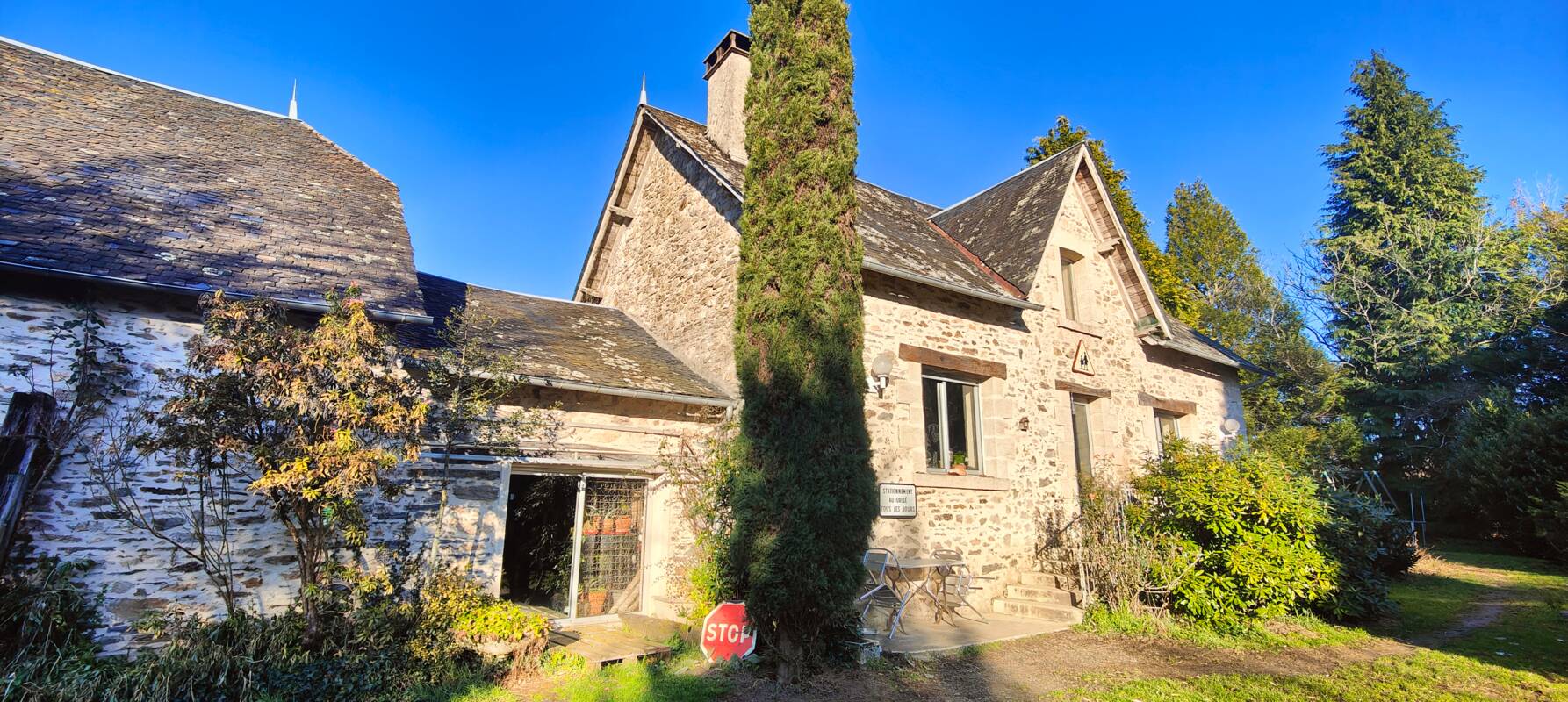 La maison, en pierres de pays se compose en rez-de-chaussée d'un salon / salle-à-manger de près de 50 m², de deux chambres de 29 m² et 17 m² ainsi que d'une cuisine et son arrière cuisine (avec WC indépendants).