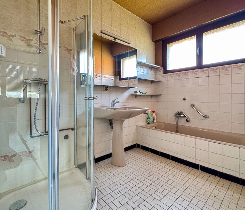 Située dans une impasse et en bordure du Soultzbach, sur un terrain de 9,37 ares, spacieuse maison de plain-pied datant de 1972. Elle se compose d'une entrée, d'un spacieux séjour, d'une grande cuisine indépendante, de 3 chambres, d'une salle de bains et d'un WC séparé. Le comble est aménageable et offre un potentiel d'agrandissement : logement indépendant, chambre, bureau, salle de jeux? Le sous-sol est total et comprend un garage double (en longueur), une chaufferie (avec un WC et une douche), et deux grandes pièces chauffées. Chauffage au fuel et un poêle à bois dans le séjour. A l'extérieur : une terrasse coté Soultzbach et jardin, un carport à l'entrée du terrain, un grand jardin à l'arrière. (4.00 % honoraires TTC à la charge de l'acquéreur.)Surface terrain : 937
