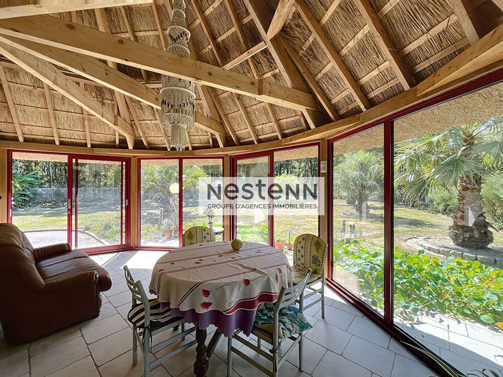 Nouveauté NESTENN ! Découvrez le charme d'une chaumière authentique entièrement rénovée en 2019, offrant 152 m² habitables, à seulement quelques minutes du centre de Saint-Lyphard. Vous serez séduit par son vaste séjour baigné de lumière avec plafond cathédrale, sa cuisine aménagée et équipée, ainsi que sa véranda ouverte sur un magnifique jardin paysagé d'environ 6300 m². La vie de plain-pied est possible avec une chambre disposant de placards, une salle d'eau et un WC au rez-de-chaussée. Une pièce supplémentaire pouvant être aménagée en chambre ou bureau vient compléter le rez-de-chaussée. A l'étage, un palier dessert deux chambres dont une avec dressing, ainsi qu'une seconde salle d'eau avec WC. Deux garages de 37 m² et 23 m² viennent parfaire ce bien d'exception, niché dans un cadre paisible. Un véritable coup de coeur. (3.27 % honoraires TTC à la charge de l'acquéreur.)Surface terrain : 6305