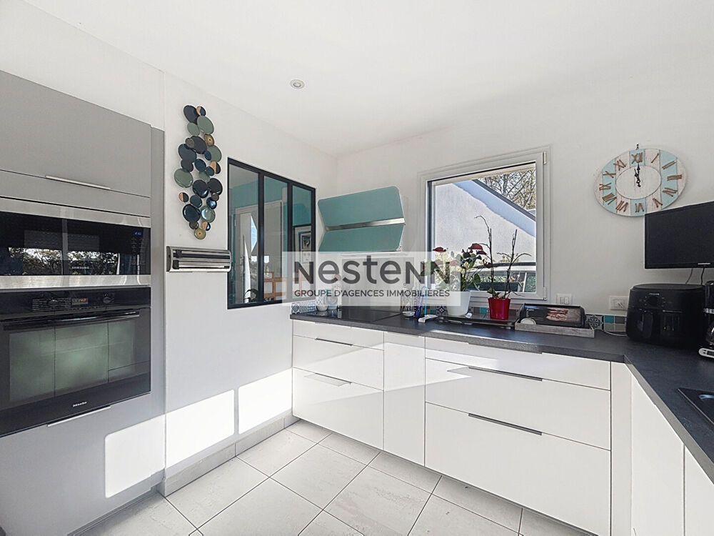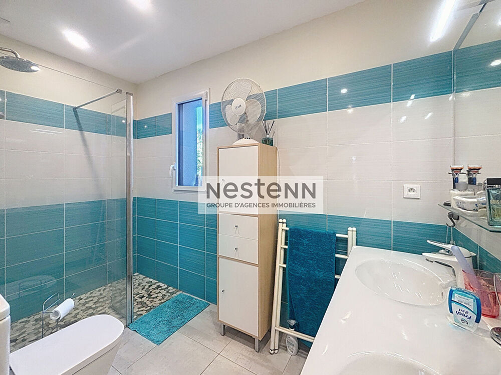 Votre agence NESTENN vous propose cette maison de 2018 entièrement de plain-pied, en impasse au calme dans un secteur recherché à 2 min de la plage. Elle dispose d'une entrée menant à un salon séjour exposé SUD/OUEST avec un poêle à granulés, d'une cuisine aménagée et équipée, d'un cellier, d'une suite parentale avec dressing salle d'eau et WC, d'un bureau, d'une autre chambre, d'un WC et d'une salle d'eau supplémentaire. Un garage, un jardin clôturé et arboré sur un terrain de + de 800 m². Contactez-nous pour une visite ! (4.23 % honoraires TTC à la charge de l'acquéreur.)Surface terrain : 800