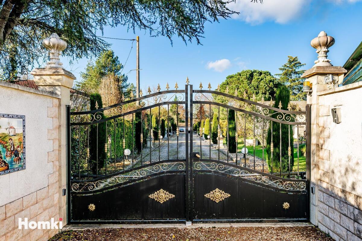 De plus, un grand garage, pouvant accueillir deux voitures et plus, donne sur une allée centrale bordée d'arbres, servant d'entrée principale à la propriété.