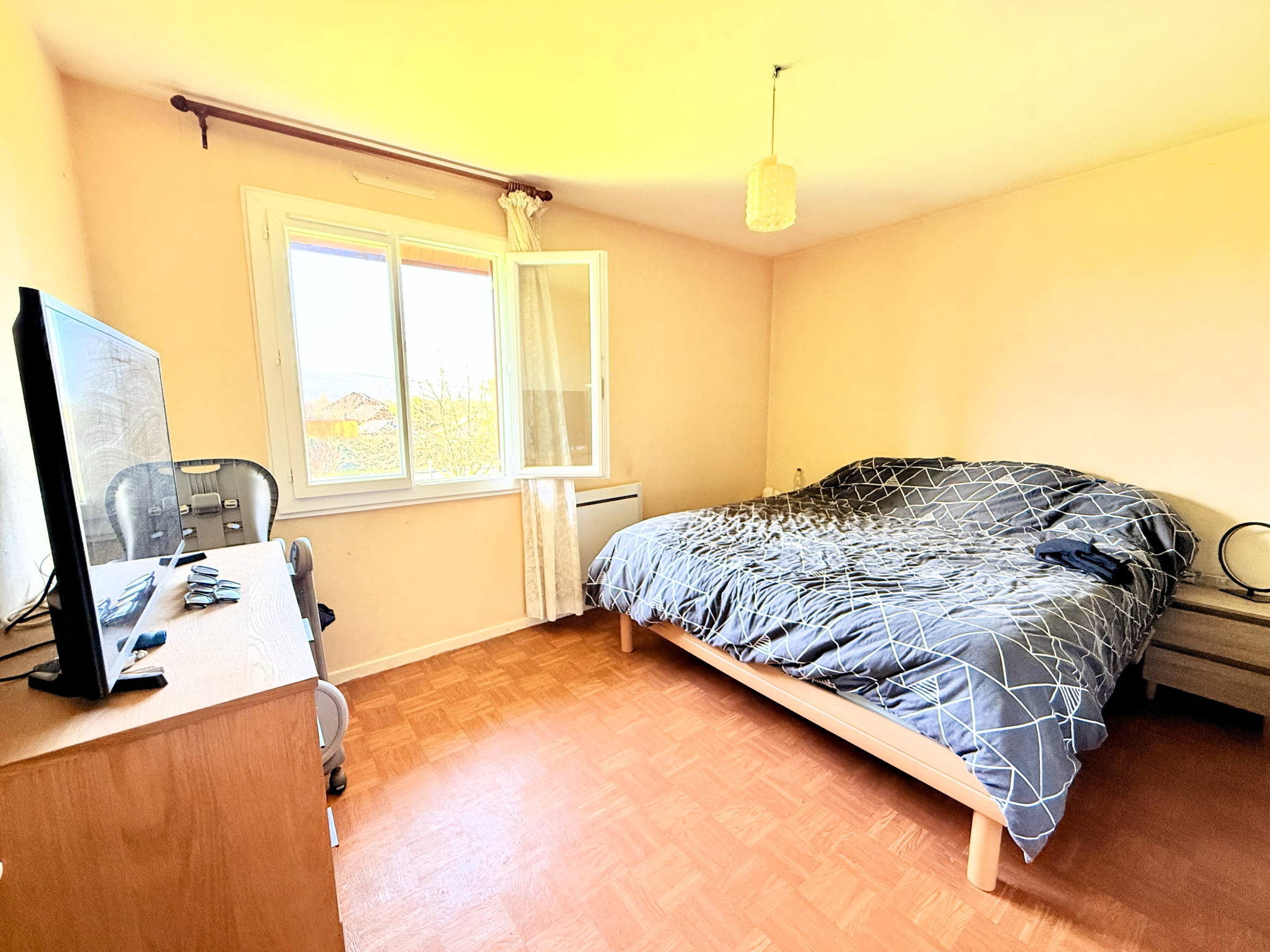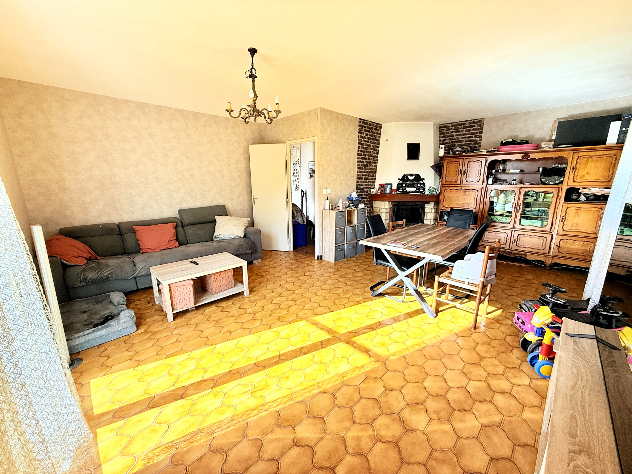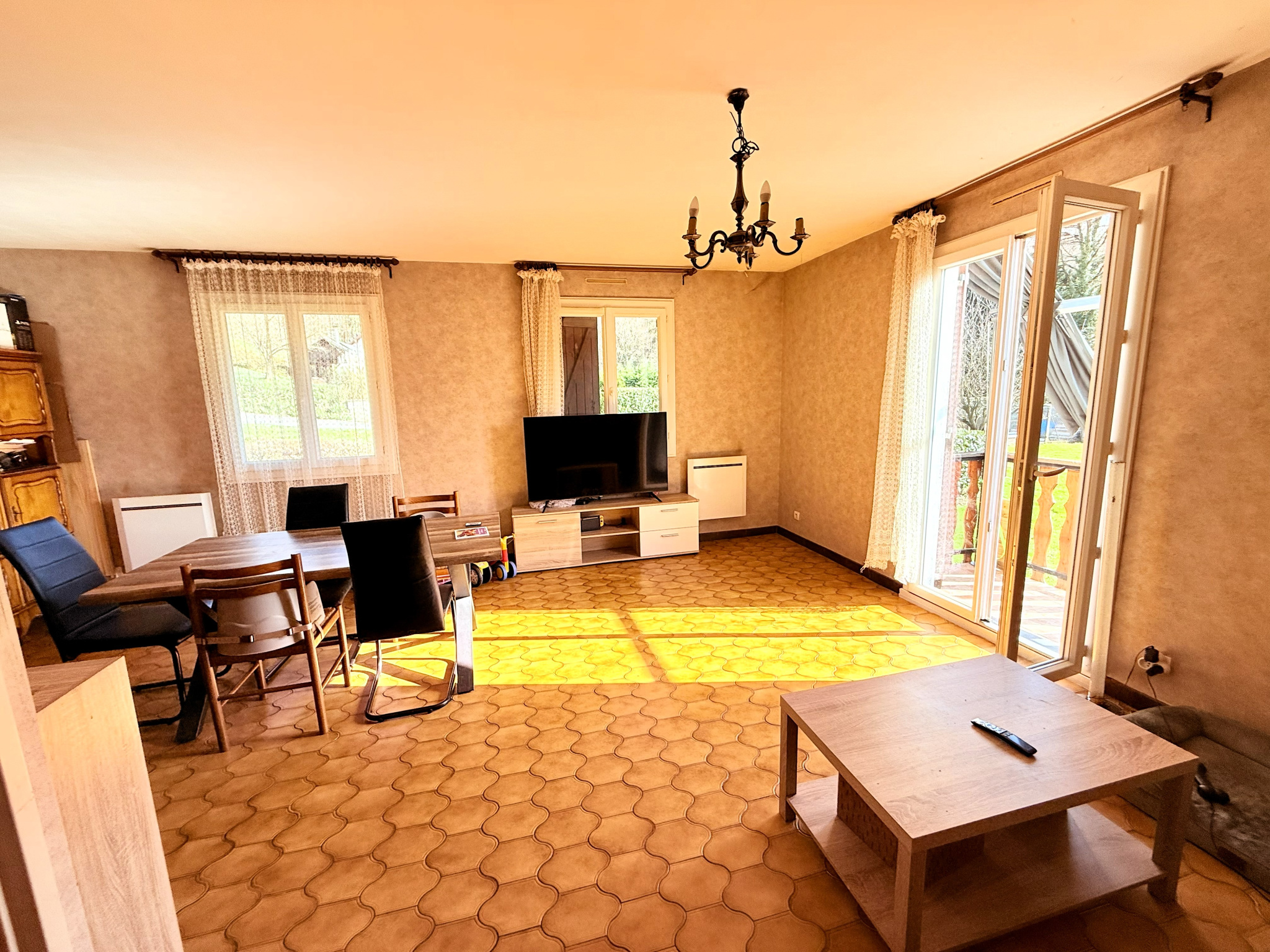Chauffage électrique par convecteurs récents + cheminée à insert dans le séjour.