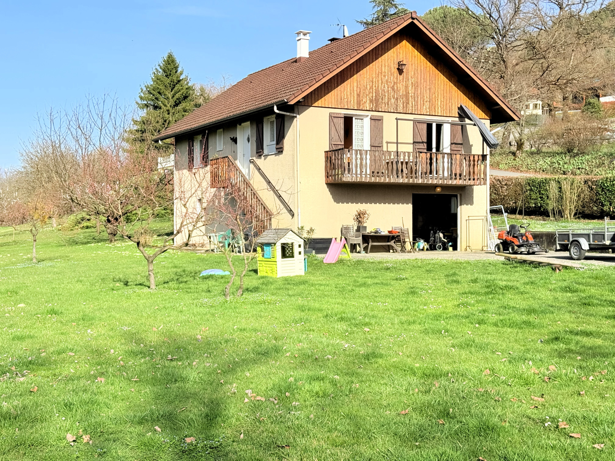 Vous serez sous le charme du grand terrain plat arboré avec de nombreux arbres fruitiers, idéal pour profiter de l'extérieur en famille.
