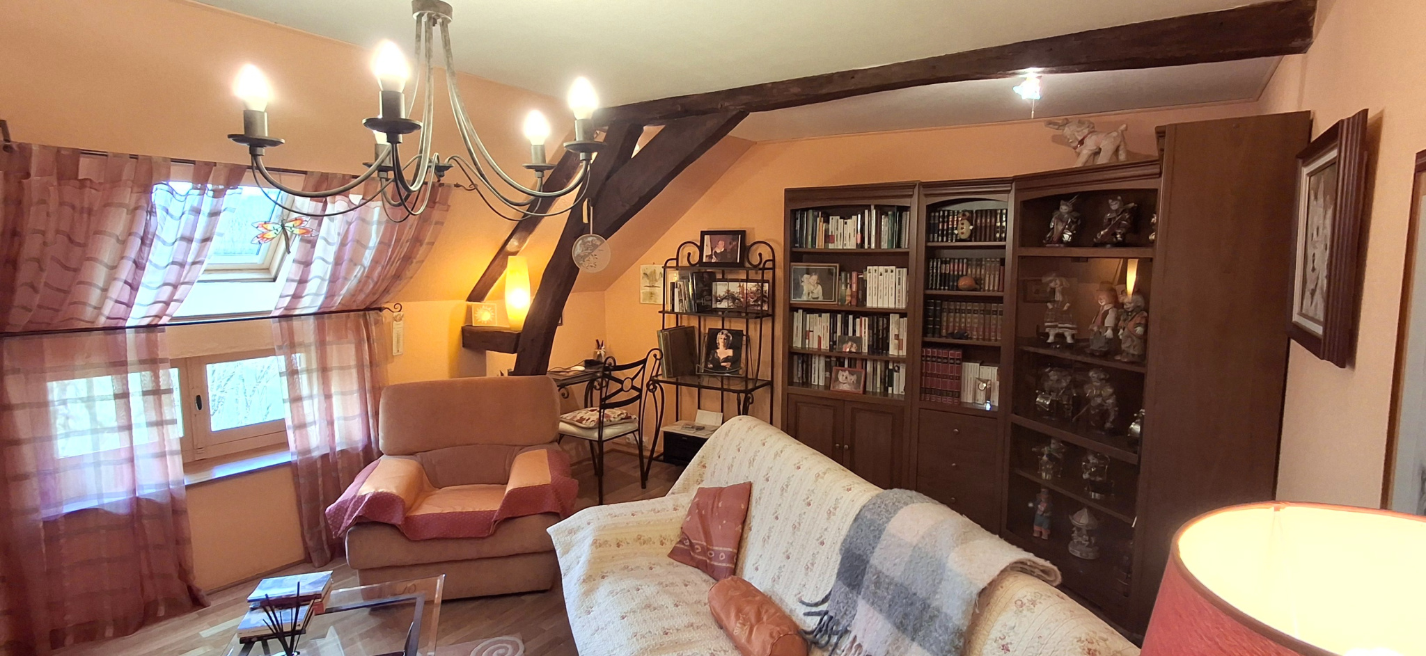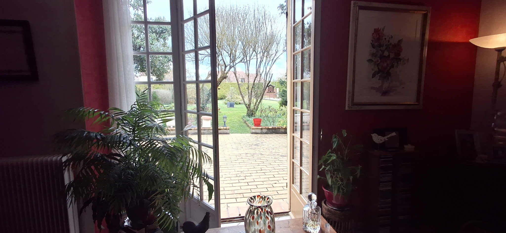 - Une spacieuse pièce de vie supplémentaire d'environ 30 m2, avec cheminée à foyer ouvert et accès direct au jardin, constitue un espace chaleureux pouvant servir de salon secondaire, de salle de réception ou de pièce familiale.