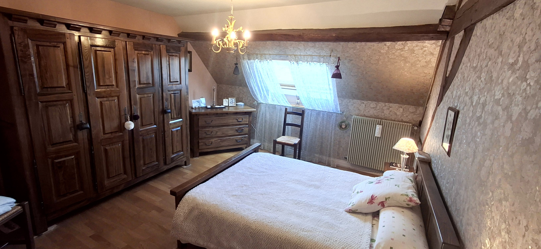 Depuis la cuisine, un escalier en chêne mène à l'étage où vous trouverez :
