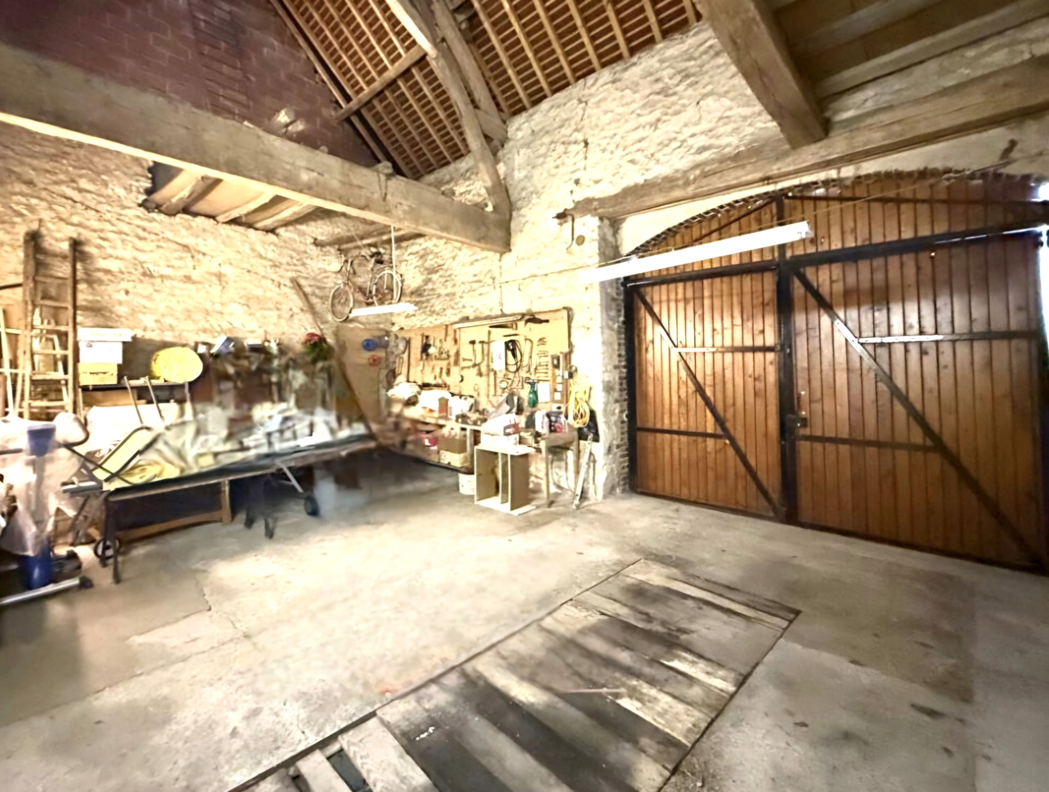 - un garage fermé d'environ 40 m2, offrant un bel espace de stationnement ou de stockage.