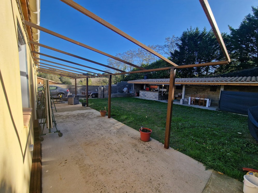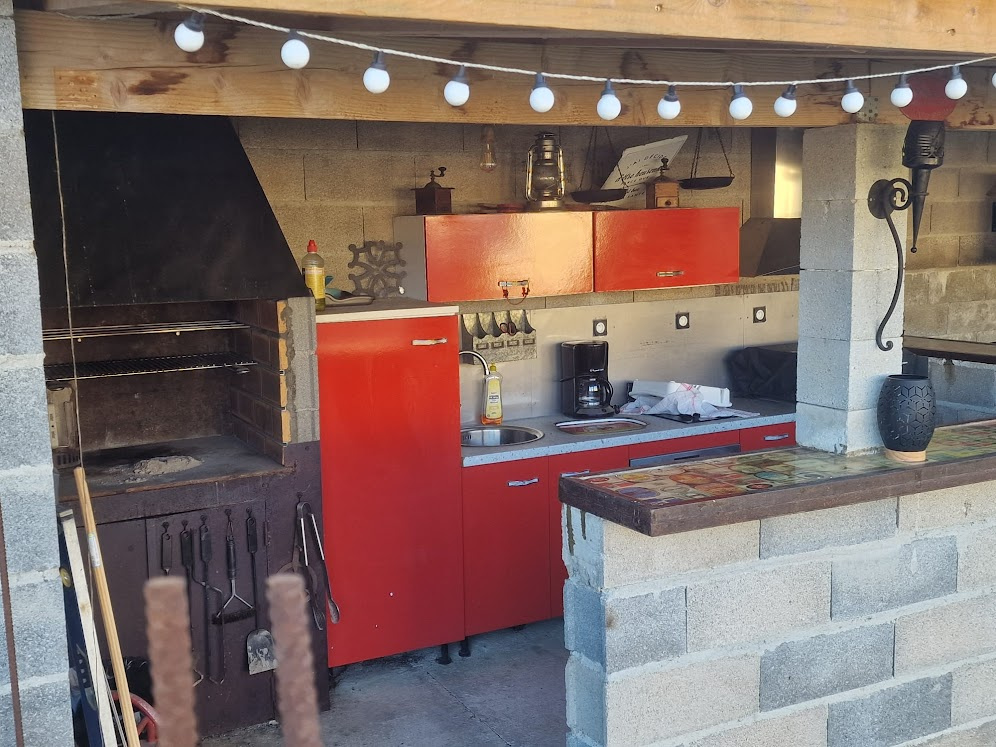 jardin clôturé par des murs, grande terrasse avec cuisine d'été équipée pour vos grillades entre amis, terrain piscinable (piscine municipale à proximité)